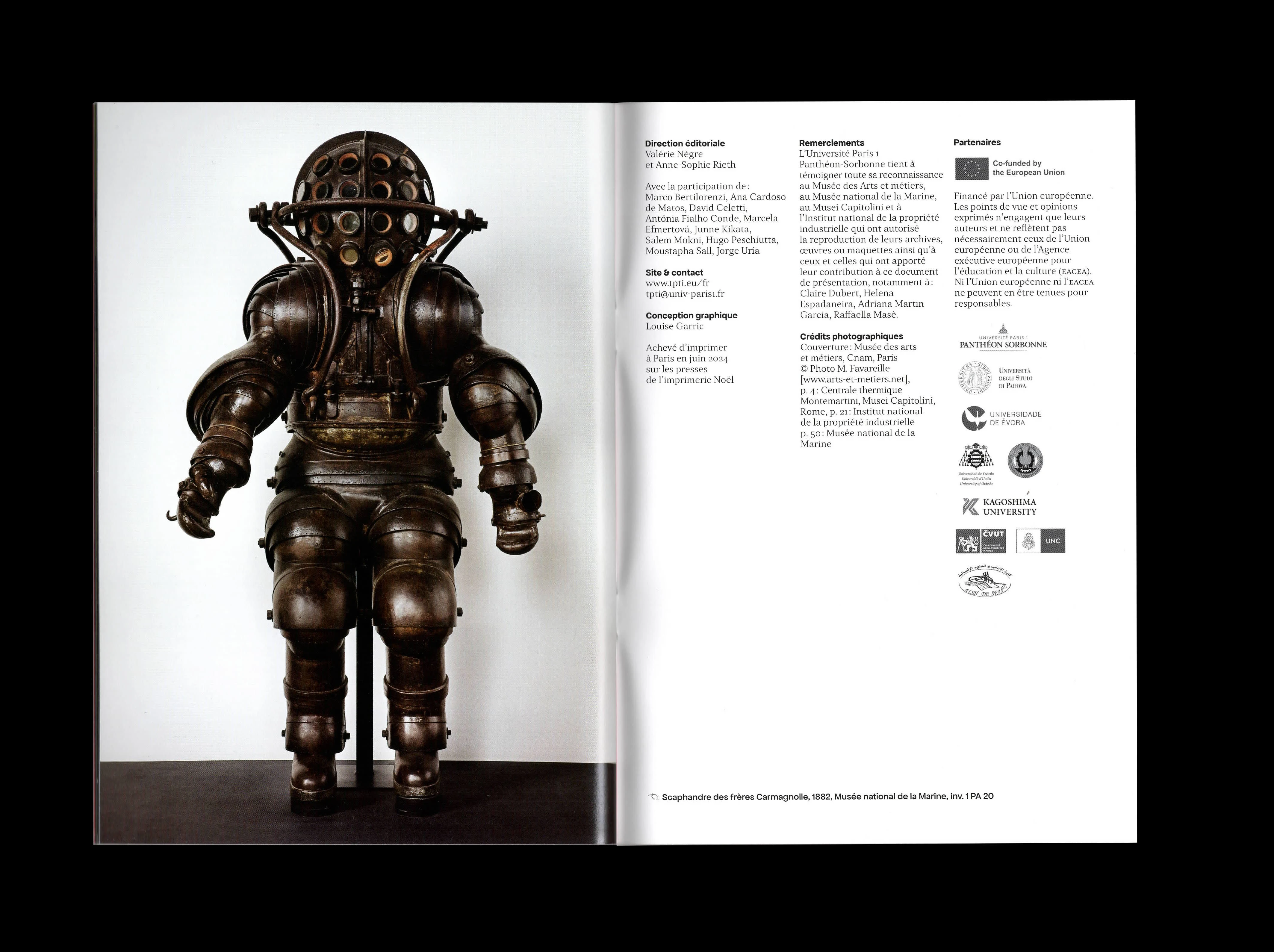 Design and layout of the brochure presenting the Erasmus Mundus Master's program in Techniques, Heritage, and Industrial Territories (TPTI) at Paris 1 Panthéon-Sorbonne University.