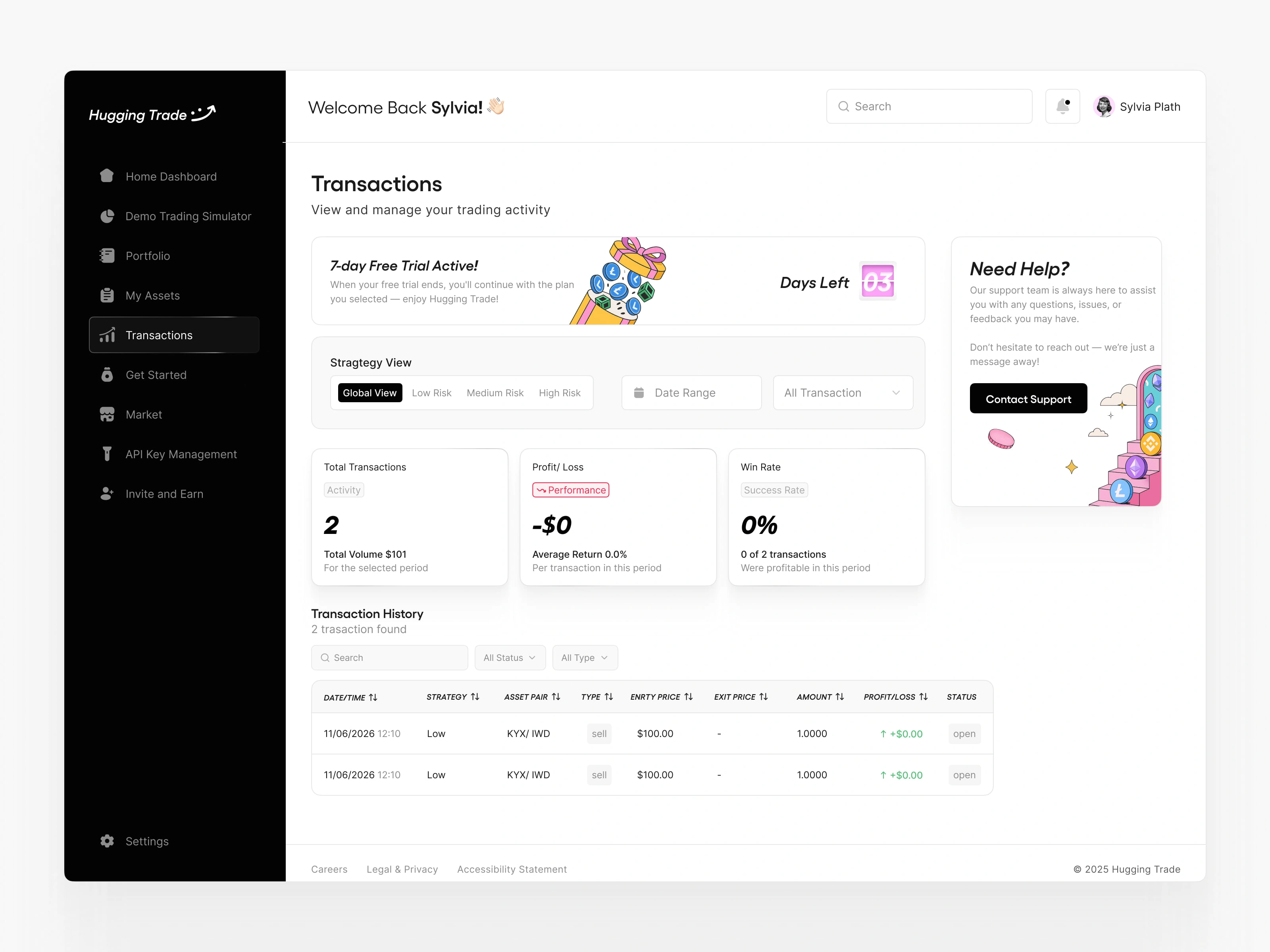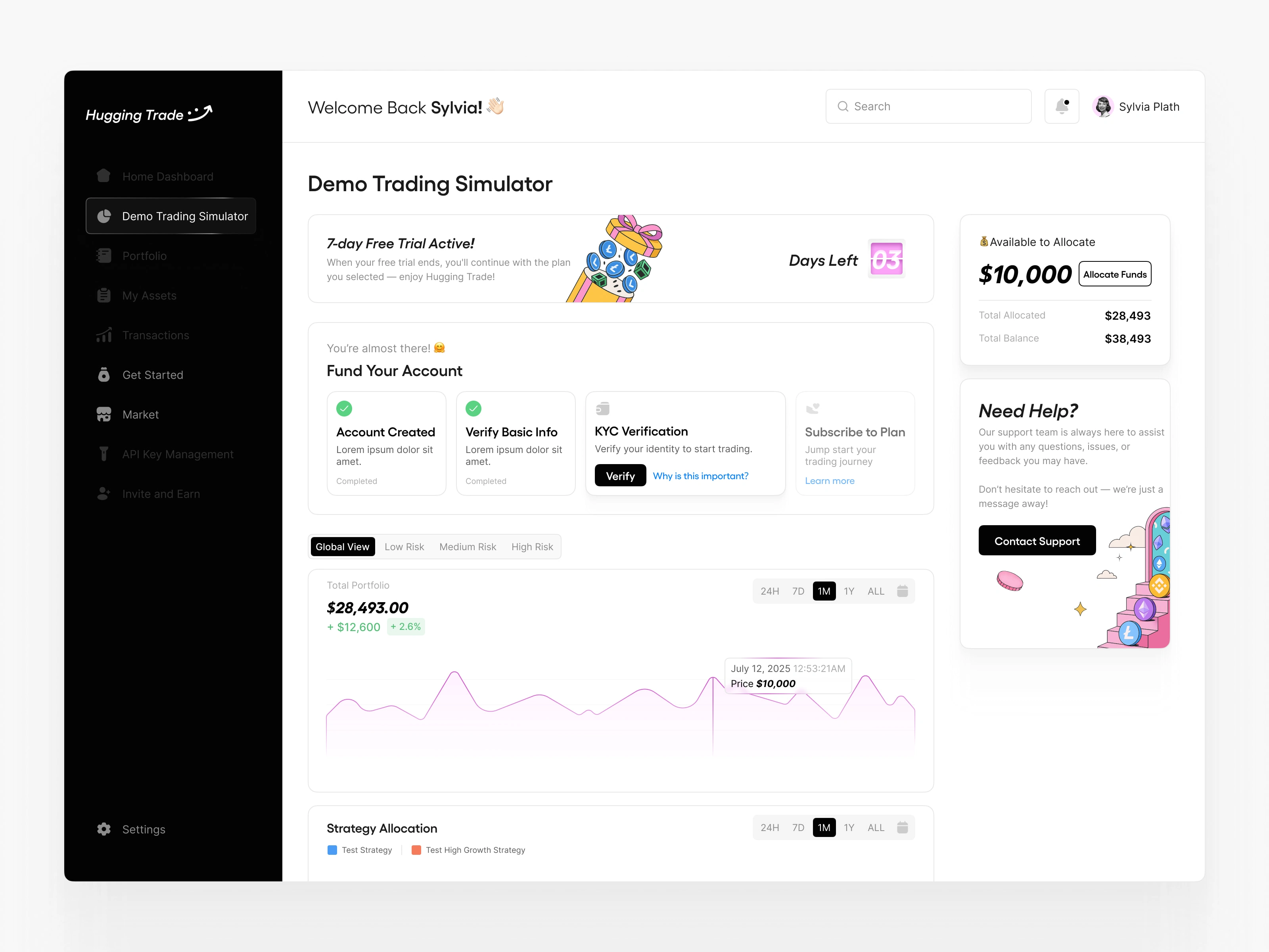 A crypto trading platform designed for clarity and speed. I redesigned the full experience, including dashboards, flows, and design system.