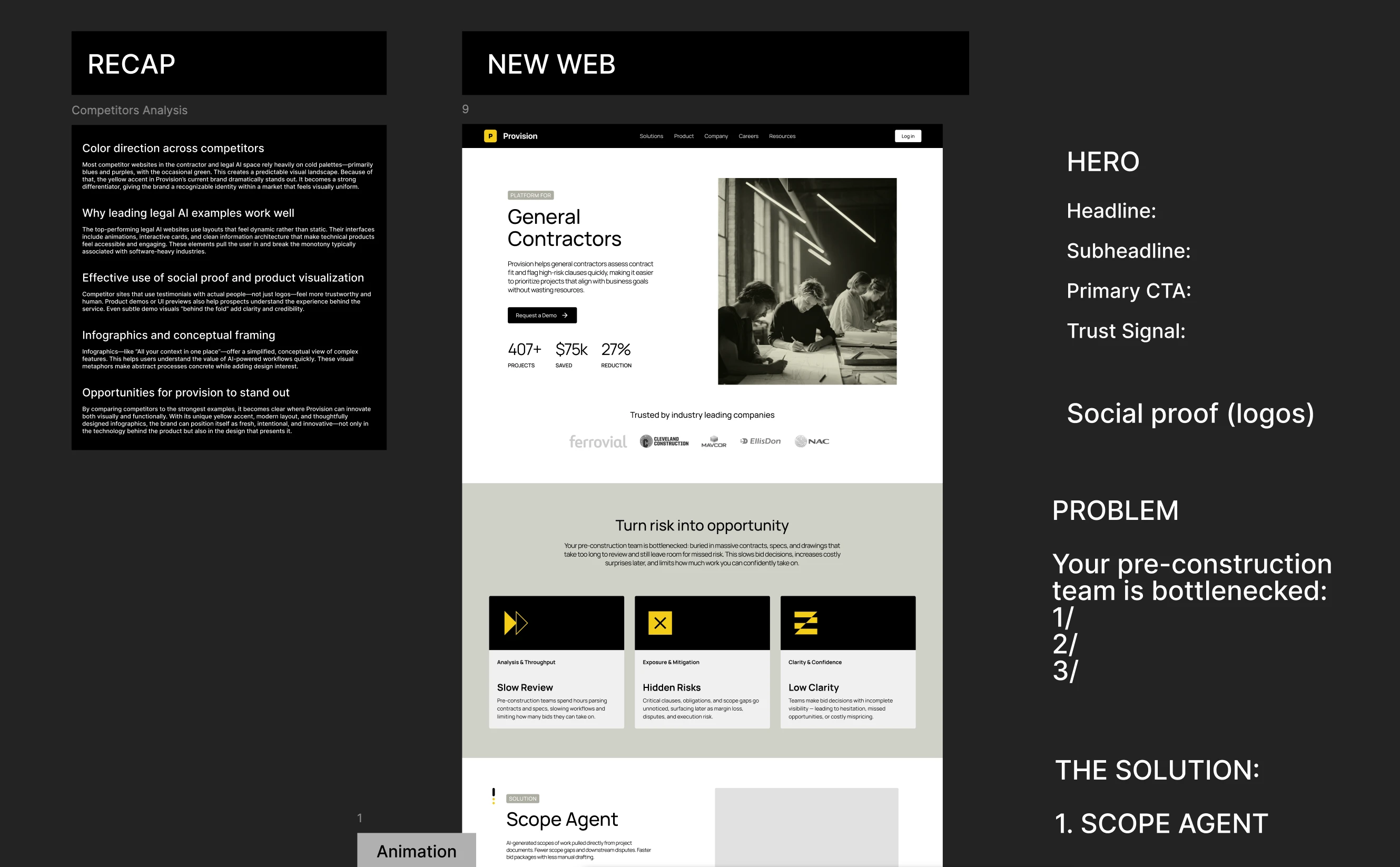 The goal of the website was not only to explain what Provision does, but to visually demonstrate how its AI works and why it materially improves bid accuracy, collaboration, and risk management during the pre-construction phase.