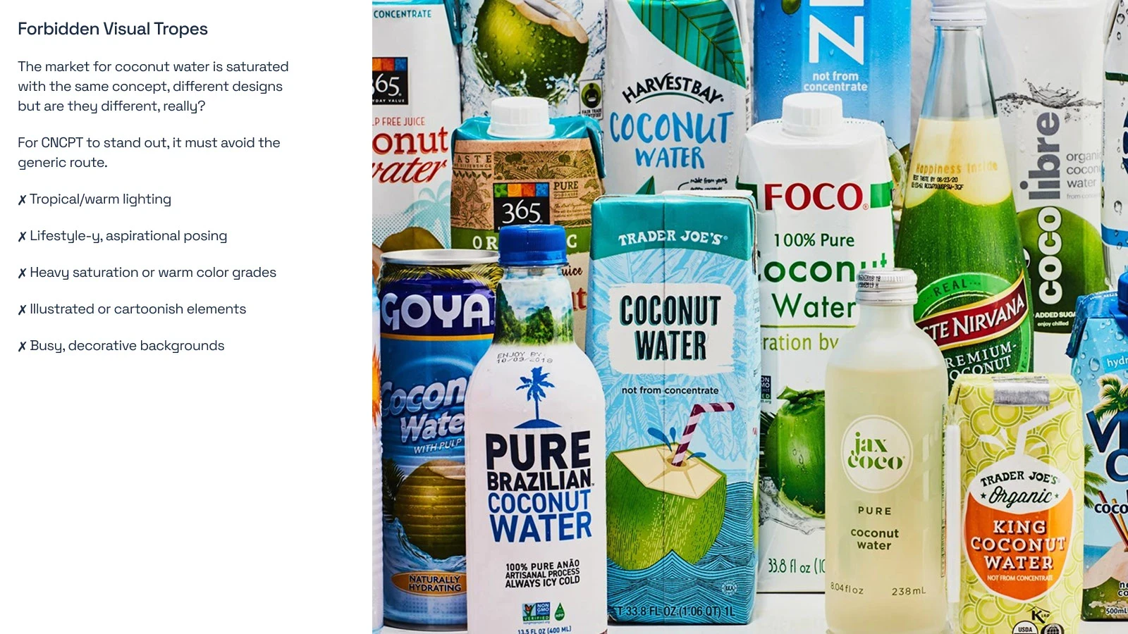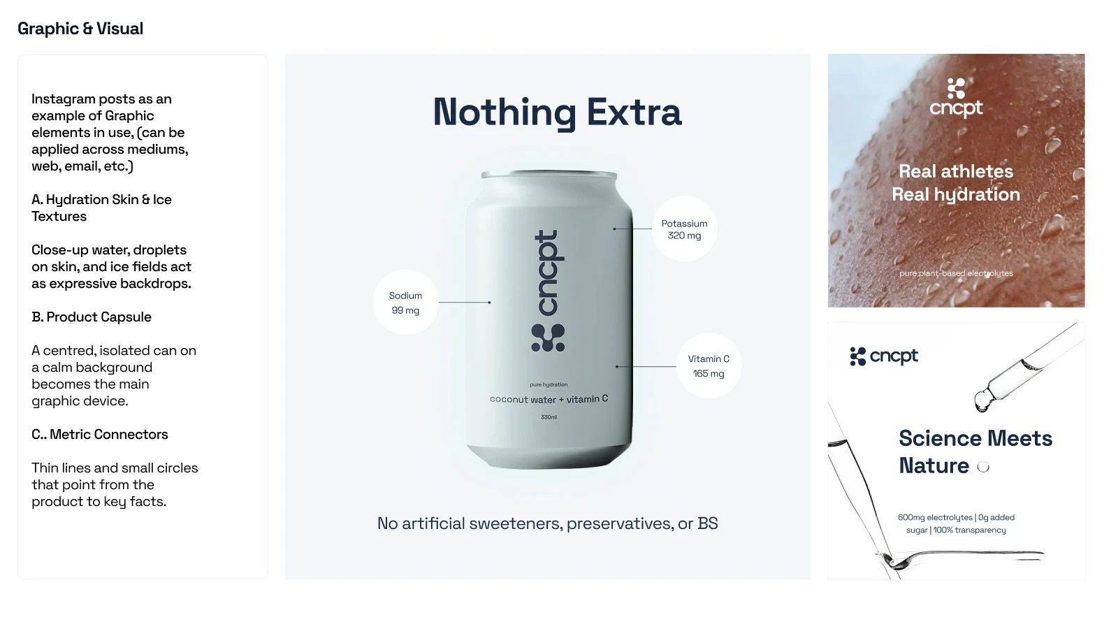 Identity exploration for a coconut water brand. The goal was to create a fresh, minimal system that feels tropical without clichés, balances lifestyle and FMCG.