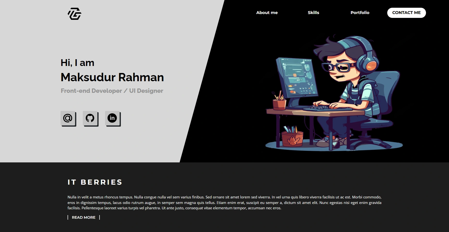 This is a practice project where I converted a Figma UI design into a fully responsive personal portfolio website using HTML, CSS, JavaScript, Tailwind CSS, and Git/GitHub. The project highlights my ability to turn design concepts into clean, modern, and mobile‑friendly web pages with attention to responsive behavior and UI detail.