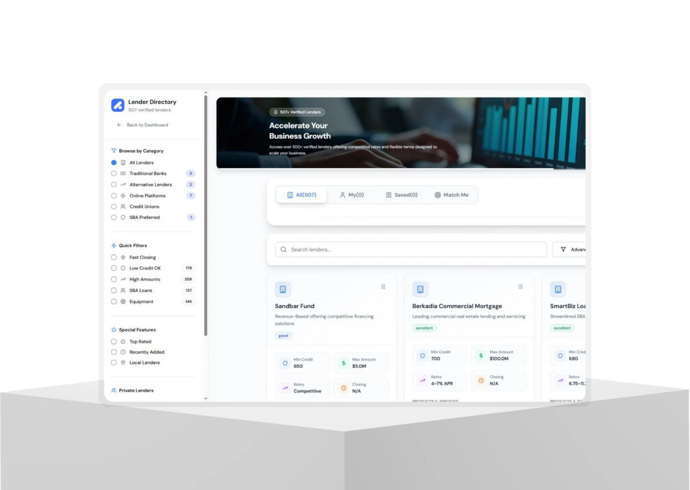 Built an AI-powered platform for credit analysis, funding strategy generation and lender matching, including a structured lender rolodex and deal workflows.