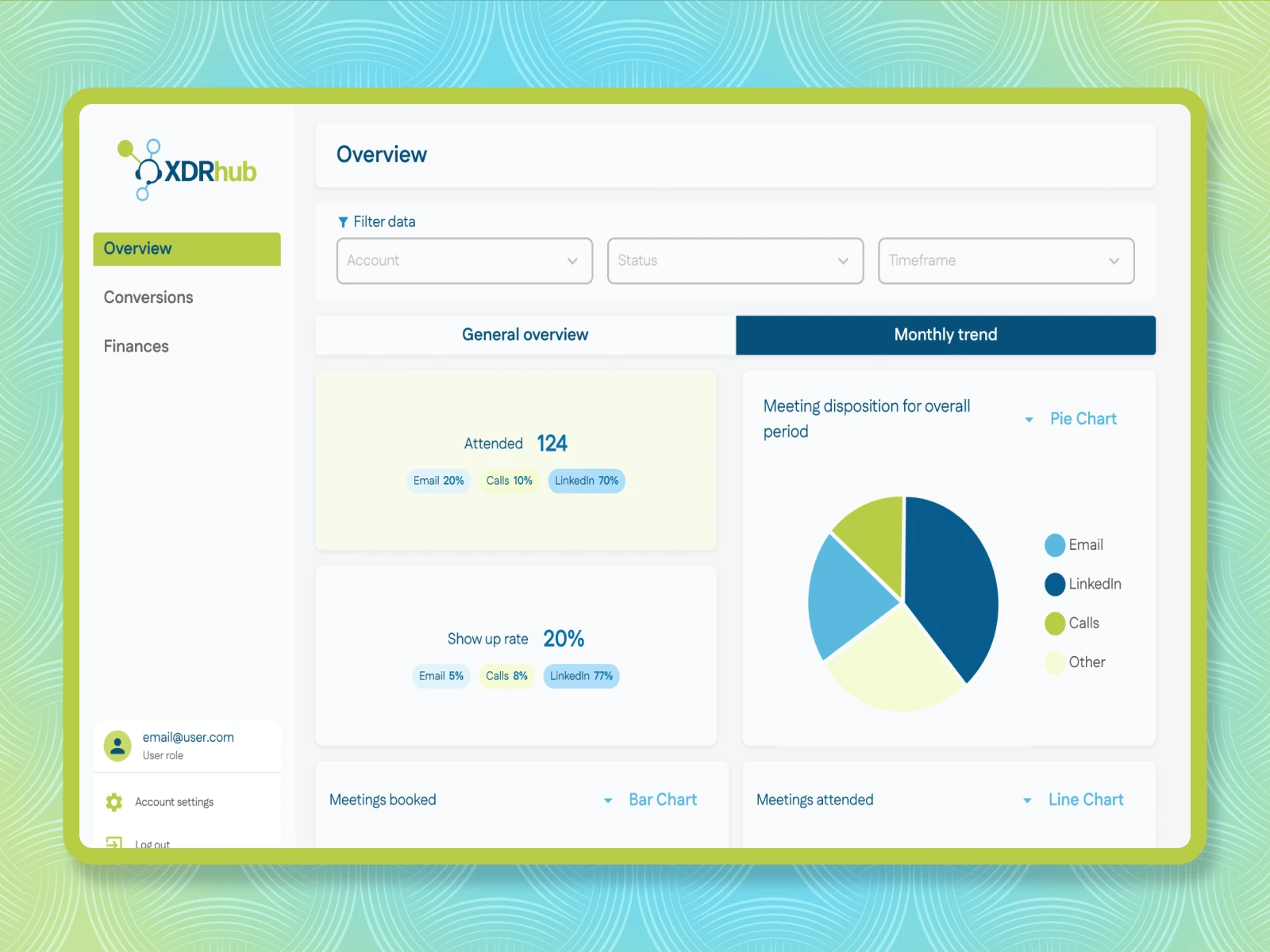 Enable filtering and reporting by account, channel, and timeframe
