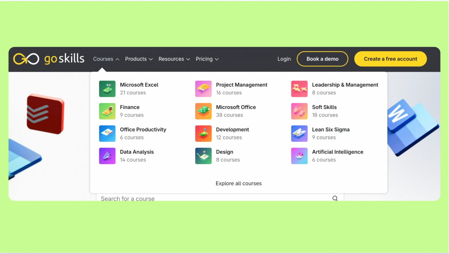 GoSkills sold an array of professional development courses that taught students how to use work apps, like Excel, Microsoft Office, Evernote and Trello as well as design software, like  Adobe Illustrator and Photoshop. They also sold skill-based courses on subjects, like project management, Lean Six Sigma, development, soft skills and leadership.