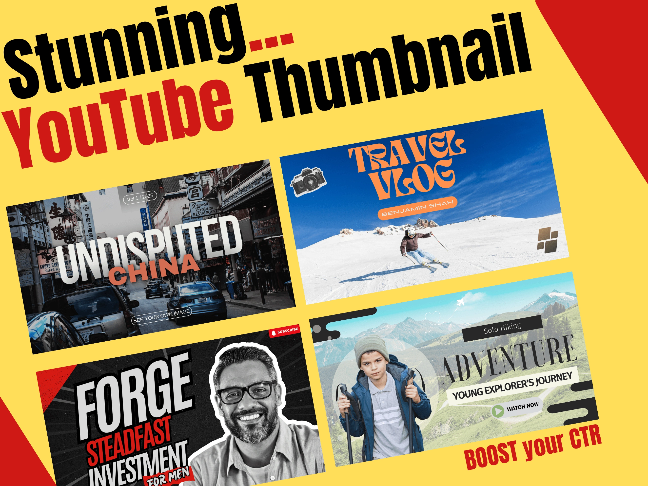 Designed custom YouTube thumbnails for channels across genres like travel, storytime, and documentary, ensuring eye-catching visuals to boost audience Interest.