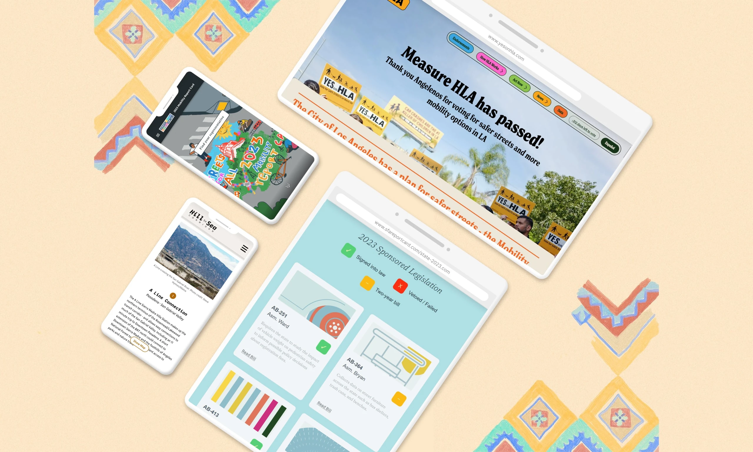 Streets for All (SFA) is a nonprofit organization passionate about raising awareness for transportation-related issues through events, legislation and proposals, and voter resources. As a UI/UX Intern, I refined 3 websites created by the Data/Dev and Design teams to increase their ease of use and user retention. This includes Measure HLA, which passed with a 65.50% YES vote in the 2024 LA primaries, and the 2023 Mobility Report Card, which set precedent for future years' annual versions.