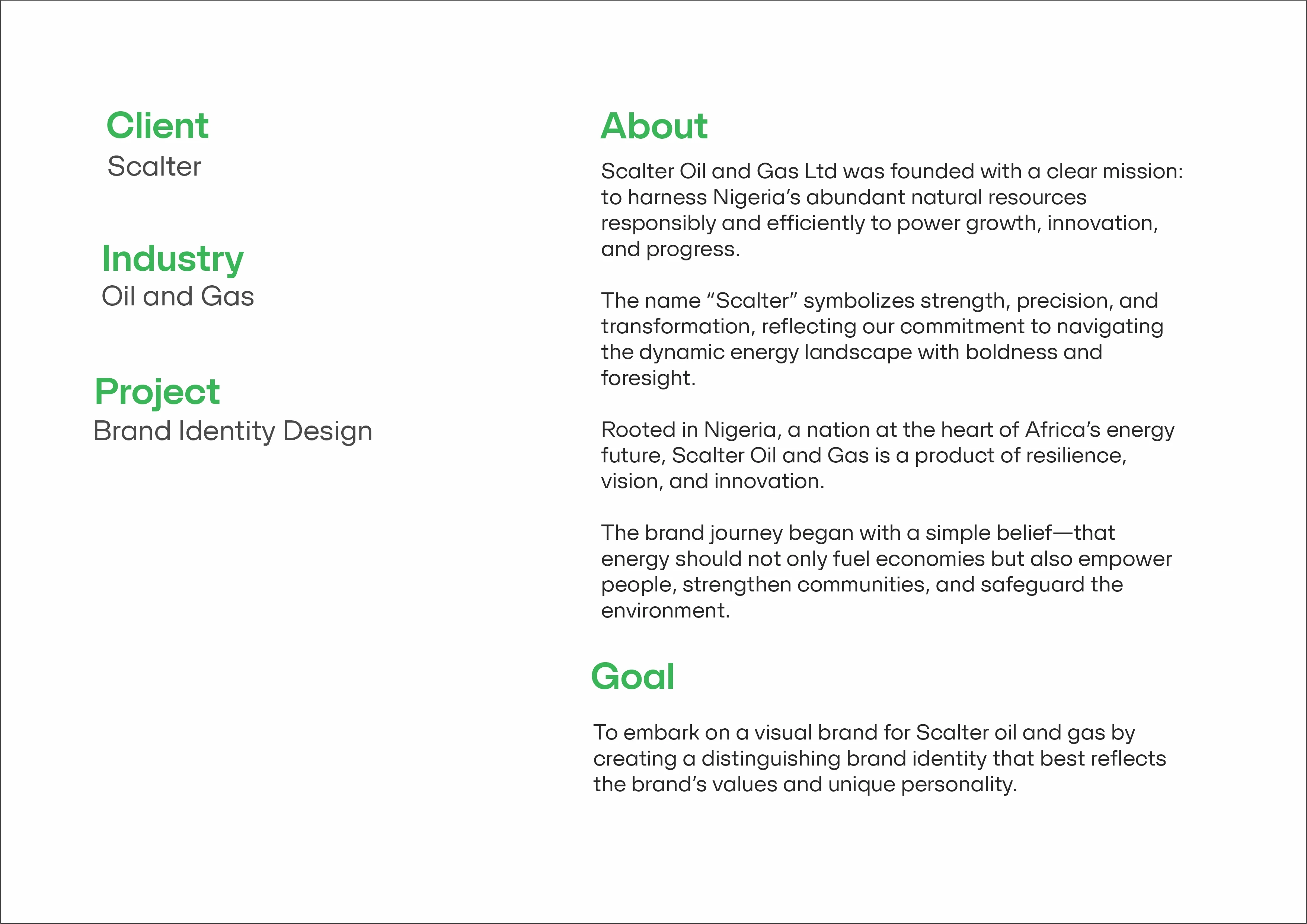 The project delivered a bold, scalable identity for Scalter Oil and Gas, boosting brand recognition and aligning visuals with its vision and values.