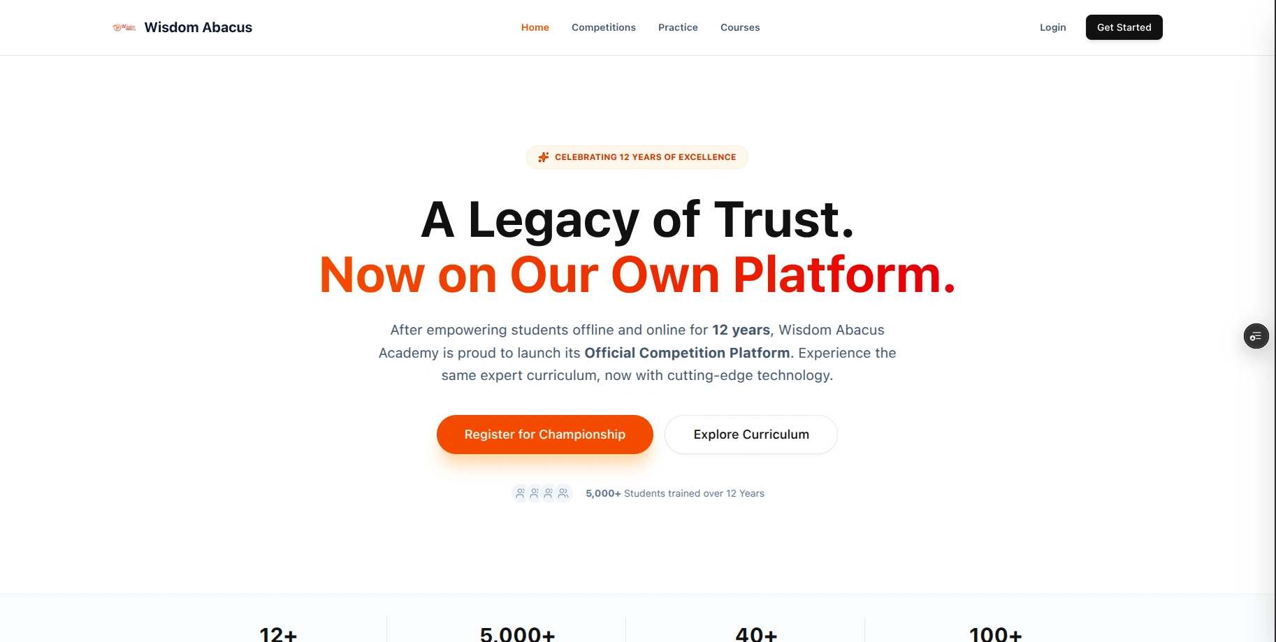 I engineered a centralized web ecosystem for Wisdom Abacus Academy to replace their reliance on manual offline processes and disjointed third-party tools. The goal was to build a unified platform that handles the entire lifecycle: national competition management, student course enrollments, and high-stakes online examinations.