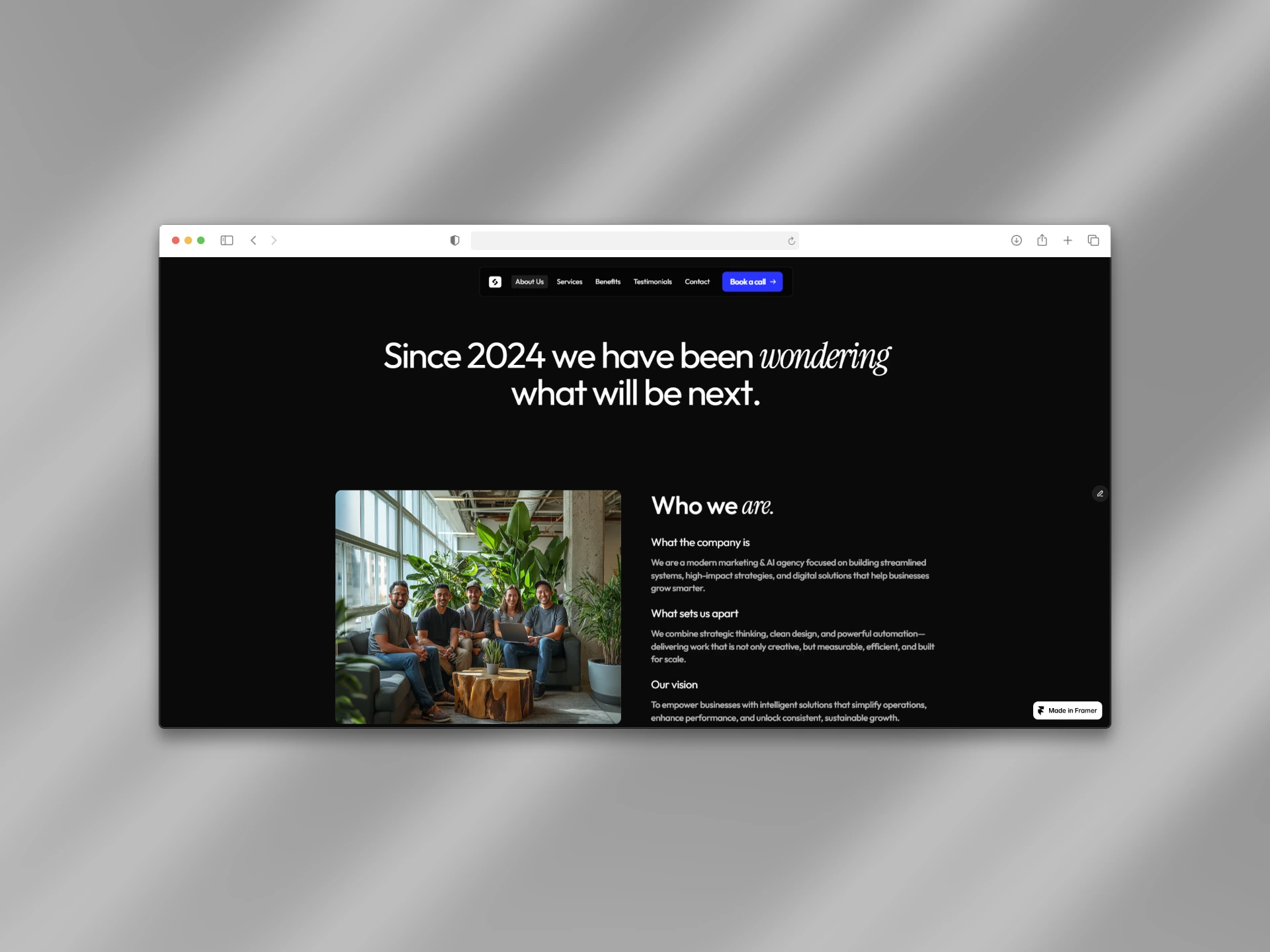 Web Studio is a dark-theme Framer template designed for agencies, studios, and modern businesses working in marketing, design, and AI — while remaining flexible enough to adapt to virtually any industry.