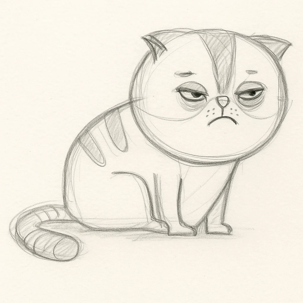 After several iterations, the design evolved into a British Shorthair-inspired cat with a subtle smug charm.