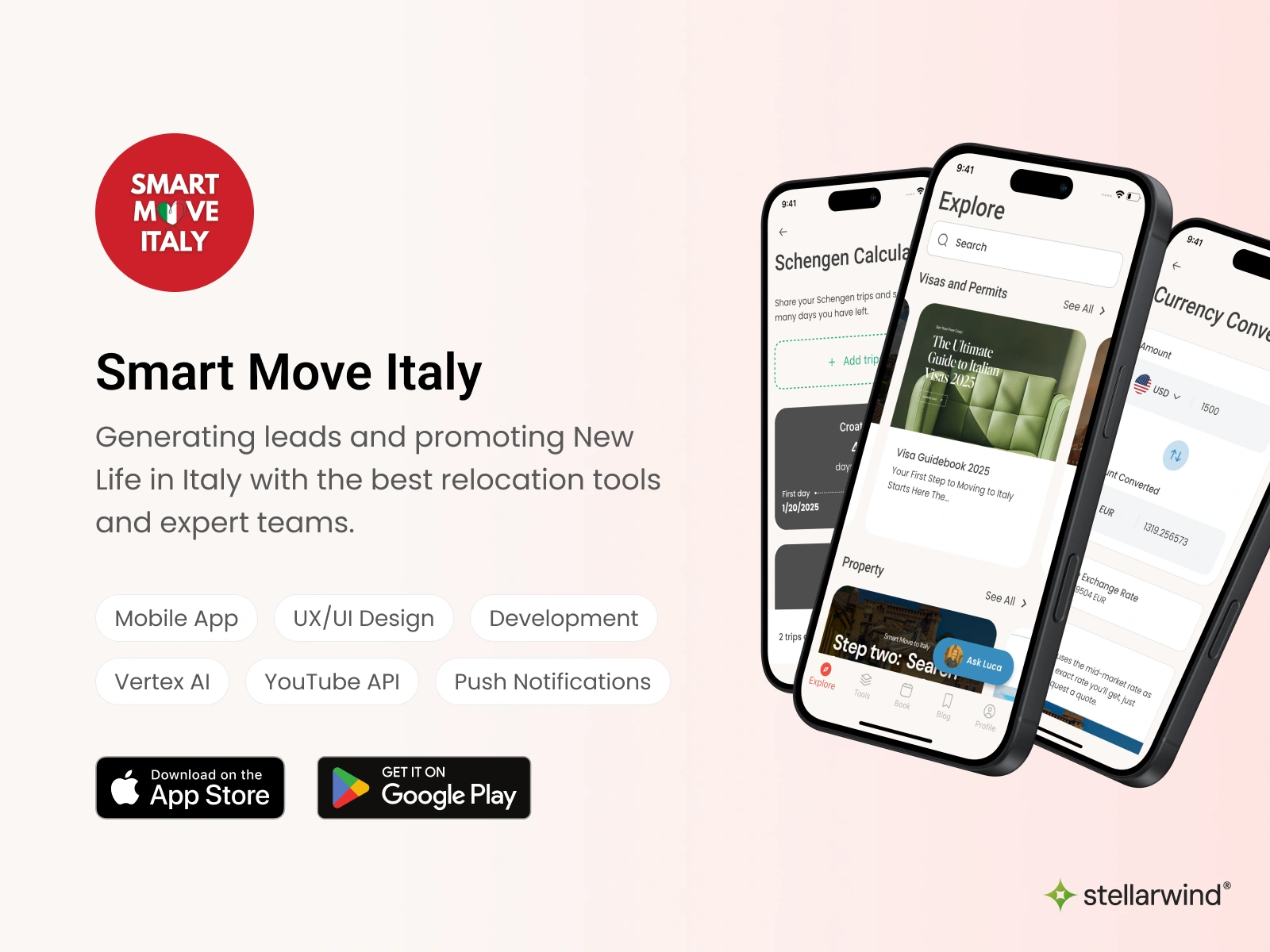 Transforming Italy's #1 relocation consultancy into a scalable iOS and Android Mobile App platform, achieving: