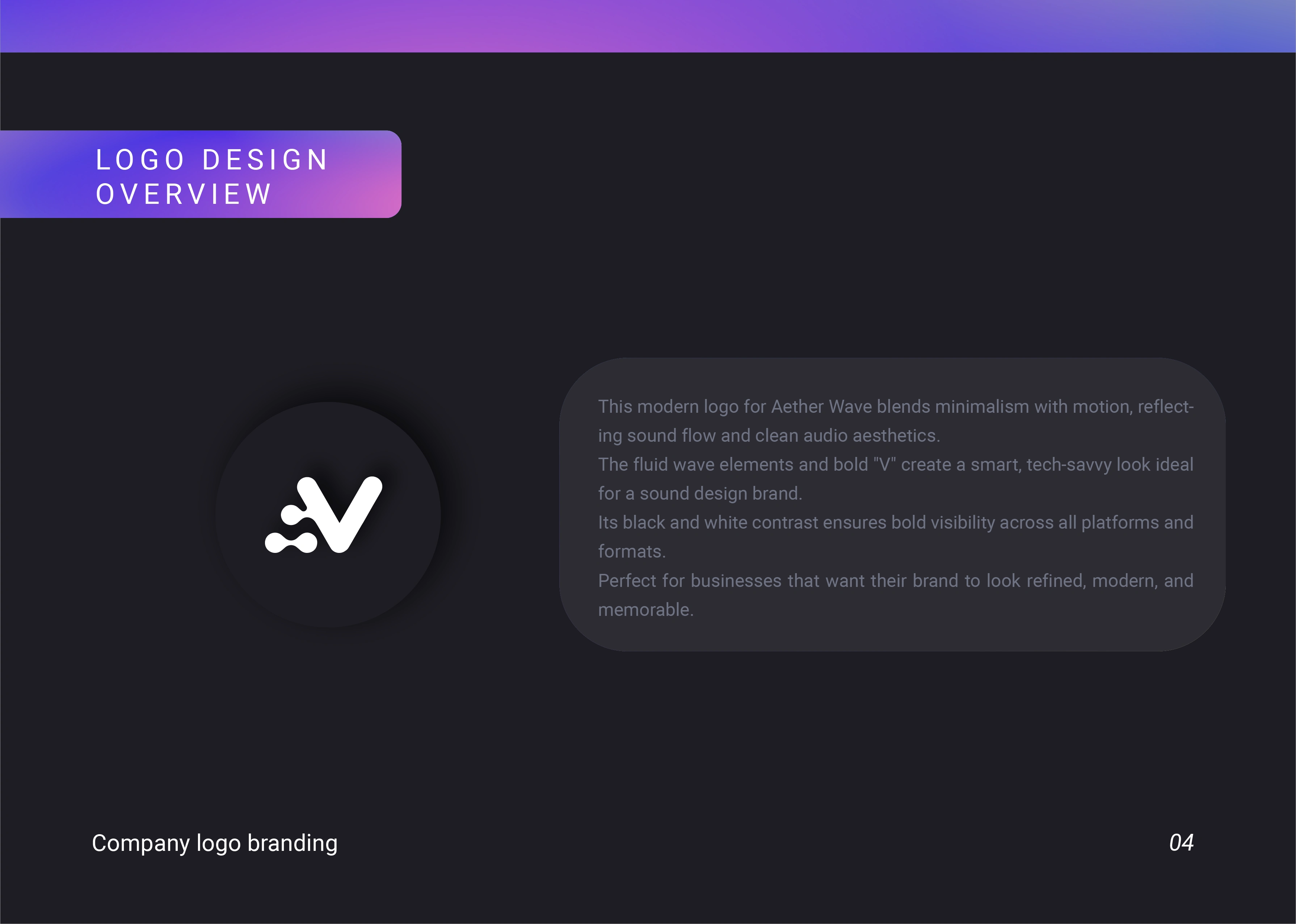 Aether Wave is a sound design and audio branding company seeking a strong, modern, and versatile logo to represent its unique identity in the creative industry. The client requested a sleek, minimal design that feels futuristic while remaining clean and professional.