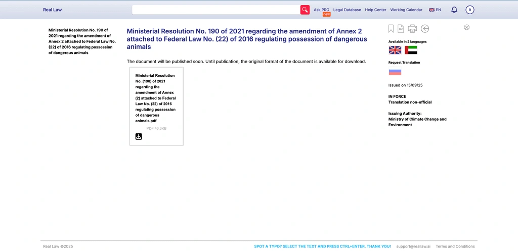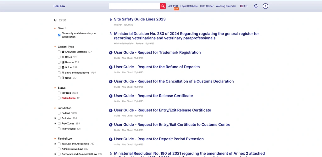 Direct access to UAE legal database (Arabic originals + English translations).