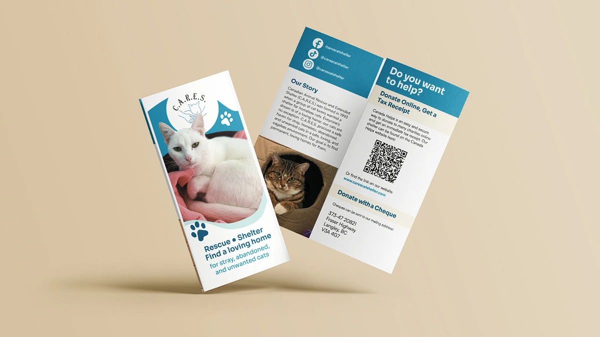 The “new day” concept was based around the fact that adopters and volunteers would be giving these cats a second chance at life. It was to be fill with hope and freedom to inspire the audience. The “domestic life” concept was based around what CARES hopes for all their cats: that they get to live out their days in a comfy, safe, loving home. By focusing the design on that, the audience would feel connected to their vision and be compassionate towards it. The CARES branding included a sky blue, so I wanted to explore how to incorporate it into both concepts with these mood boards, as well.