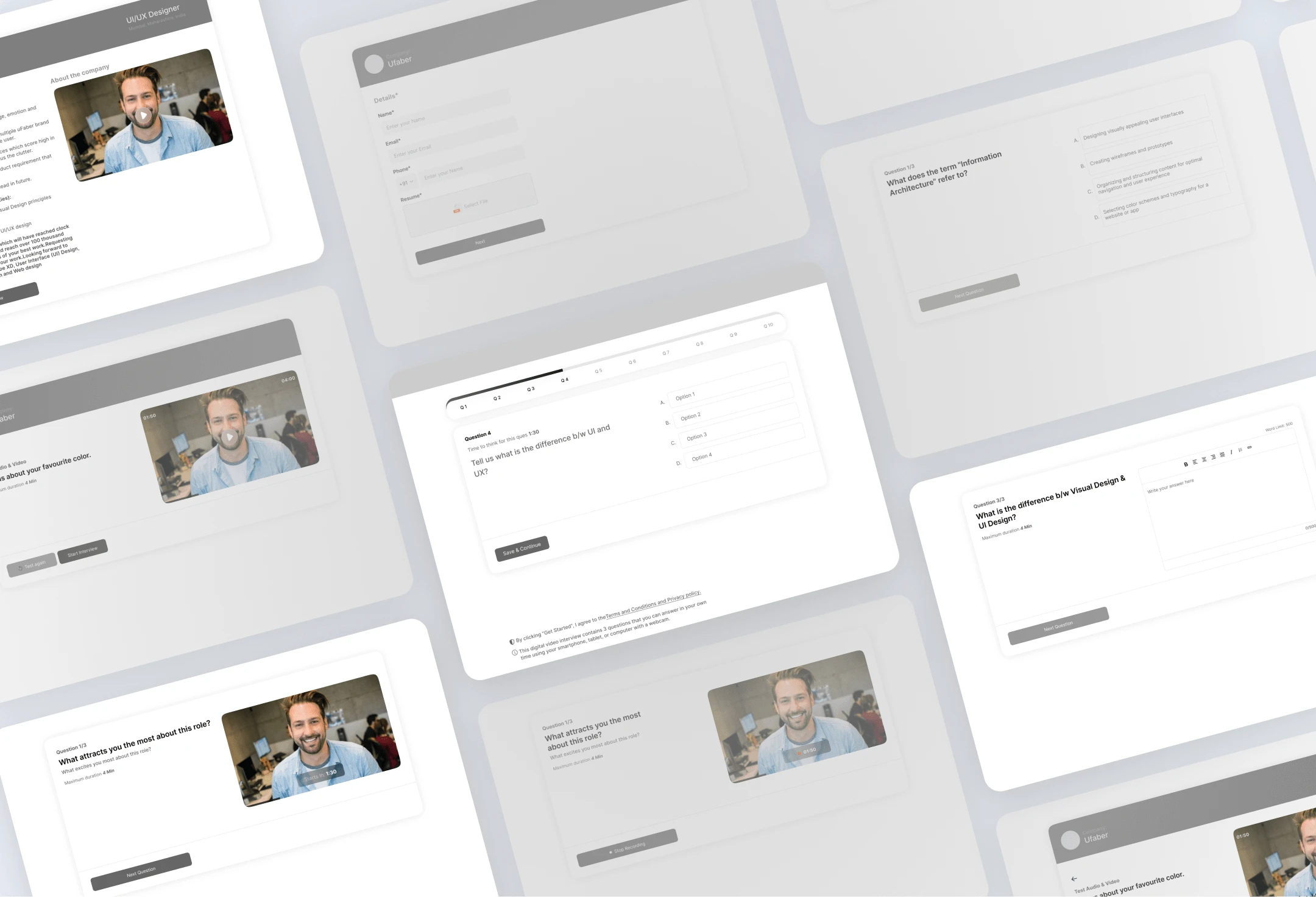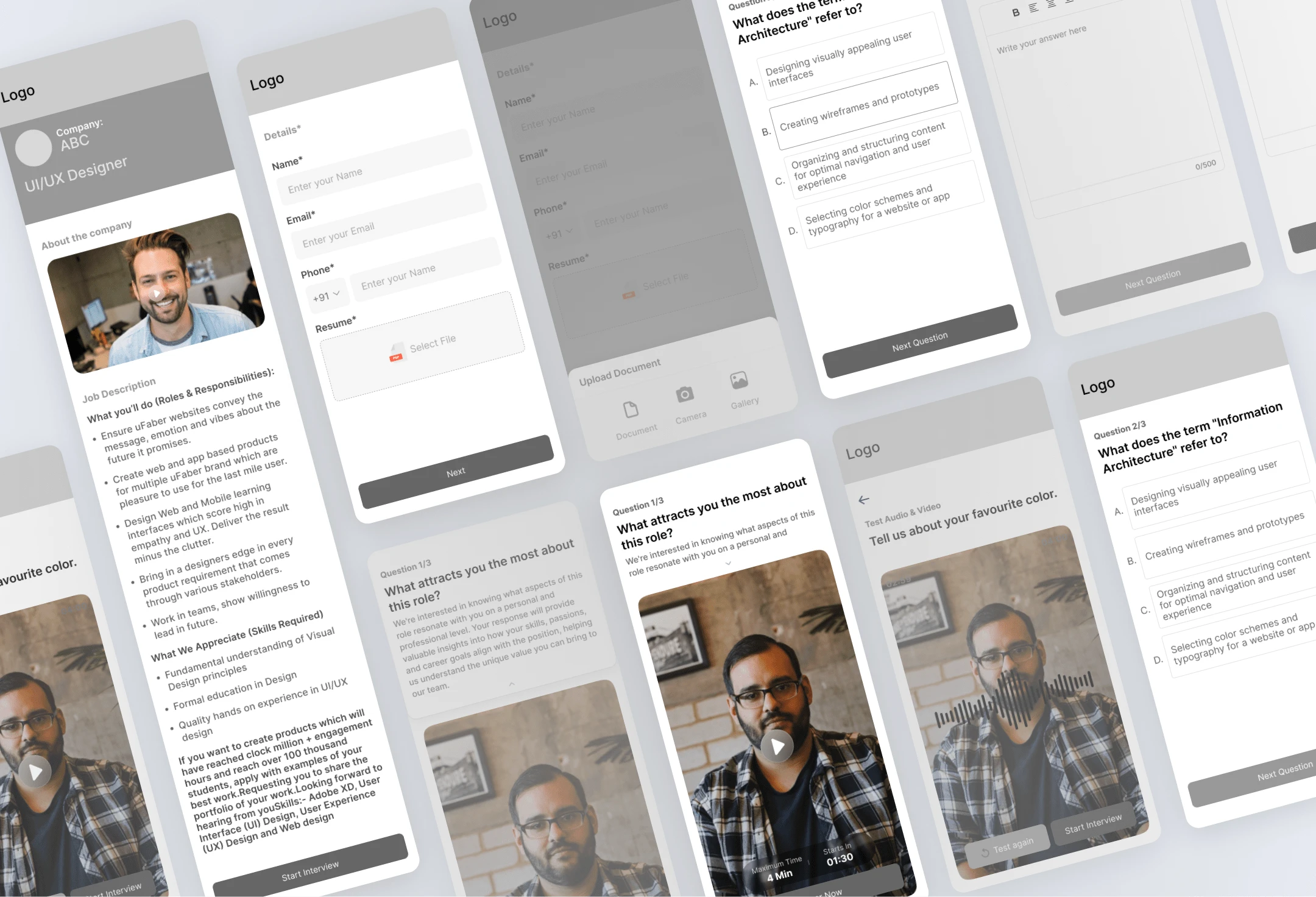 UI/UX Design: Design the recruiter and candidate-facing screens, focusing on clarity, ease of use, and engagement.