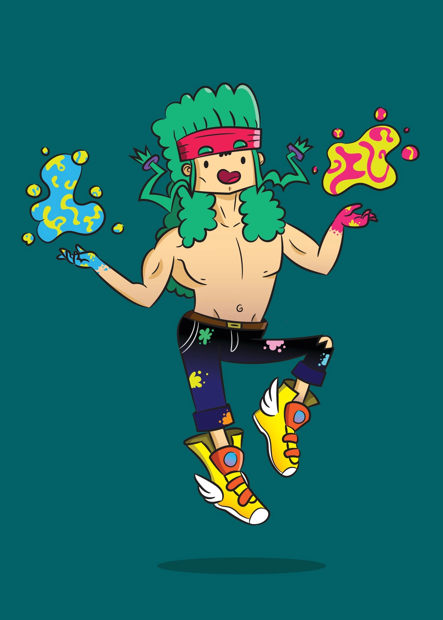 This is the first character in a boardgame I am designing featuring a cast of artists. This is the painter's final form, the master painter.