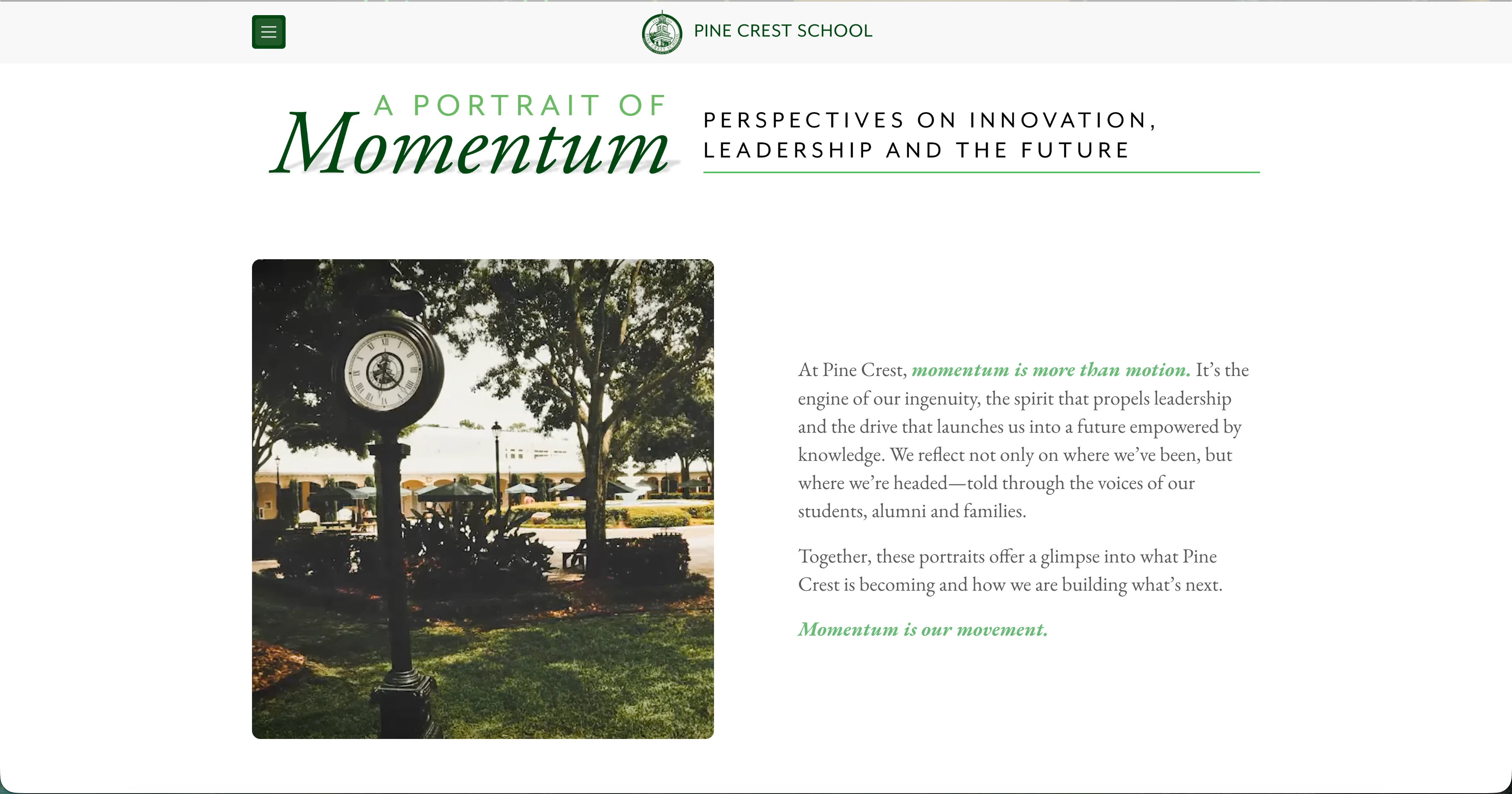When Pine Crest School sought to digitize their annual President's Report, the objective was to move beyond a static PDF and create a highly engaging, immersive web experience. The platform needed to effectively communicate complex financial data alongside compelling human-interest stories of innovation and leadership. We leveraged Framer to deliver a visually rich, high-fidelity report that functions seamlessly as a year-round digital asset.
