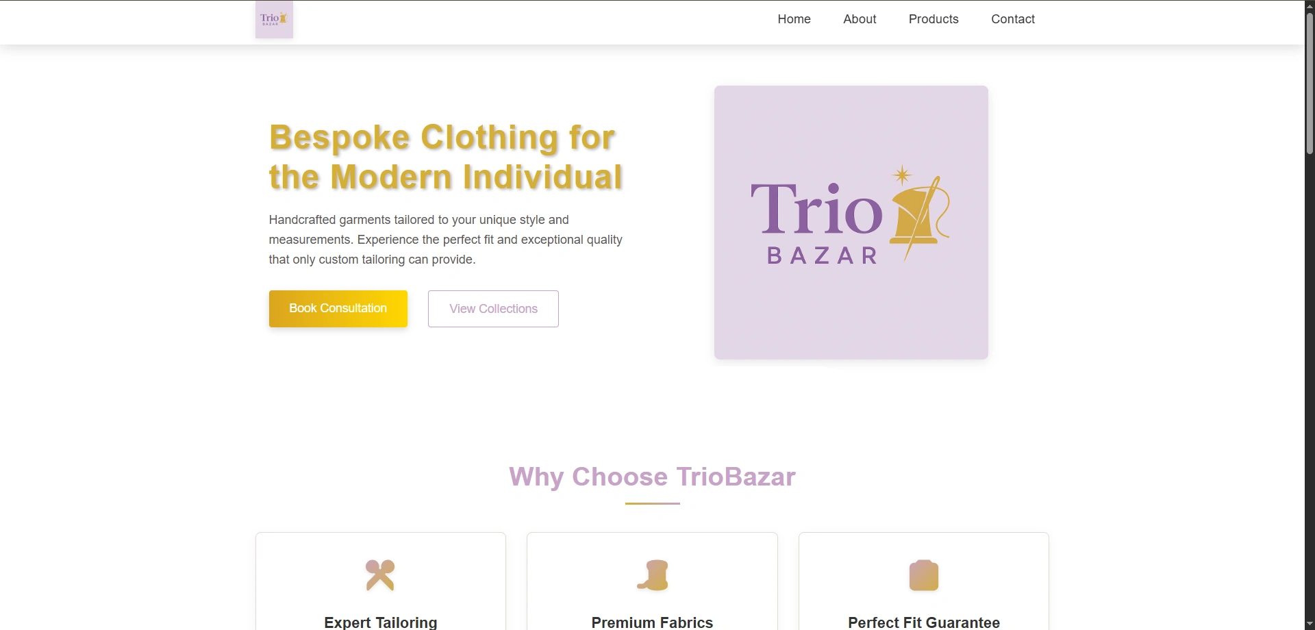 Design and development of TrioBazar's official website—a responsive platform built for a dynamic tailoring institution serving a contemporary fashion needs.