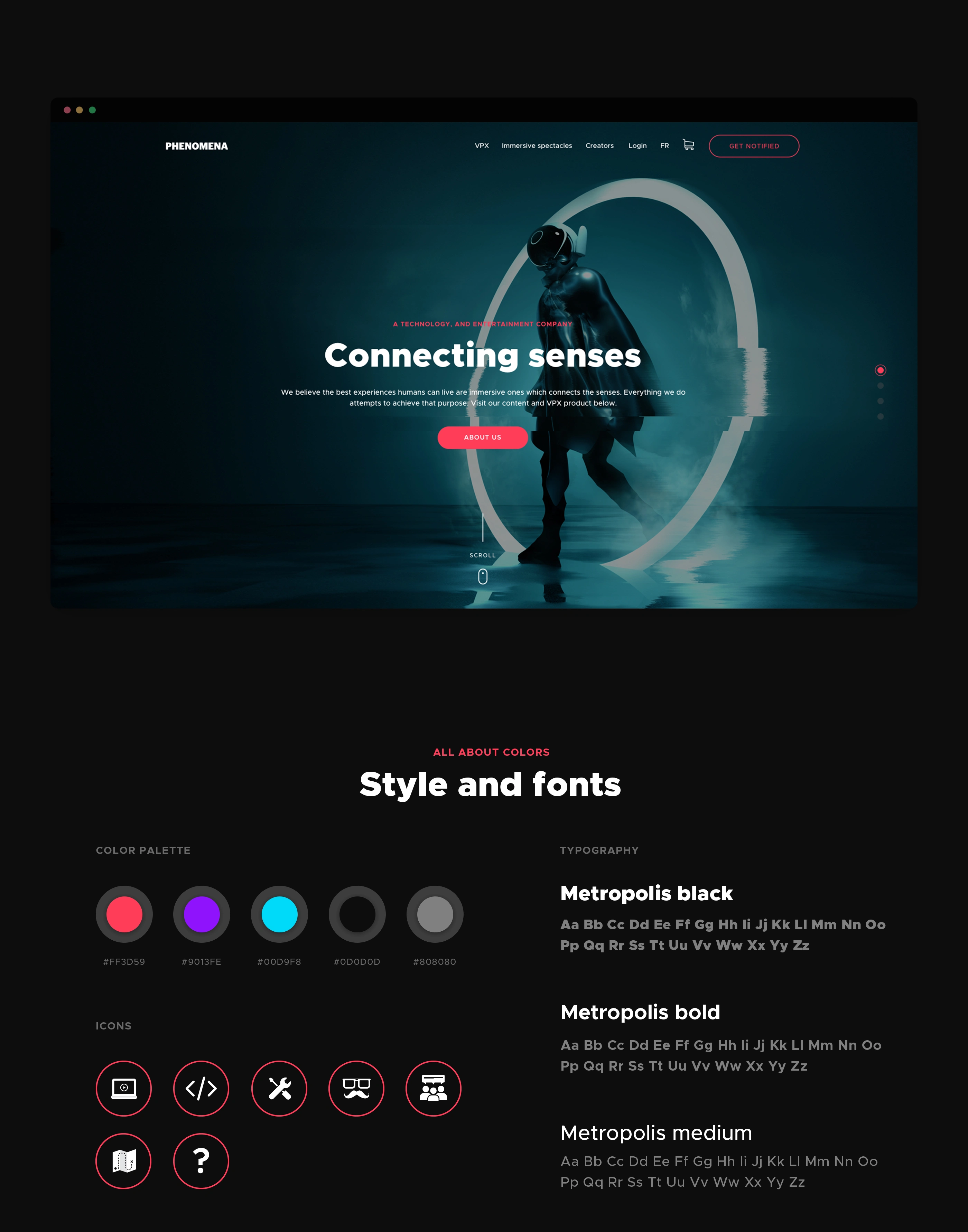 Immersive redesign of Phenomena’s website with a bold, retro-futuristic look, high-contrast palette, and responsive design that captures adventure.