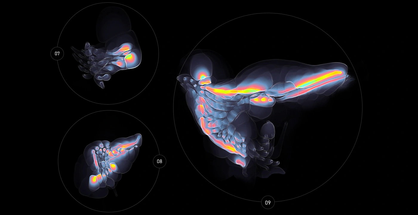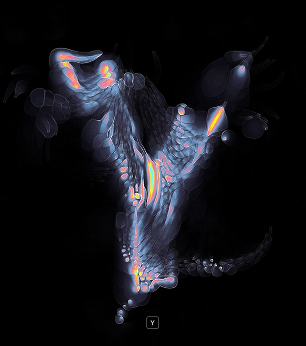 The result is a collection of organic, algorithmically generated forms that resemble living systems. Each 3D asset is enhanced with bespoke shaders to highlight material qualities and emphasize visual depth, merging real-time interaction with digital craftsmanship.