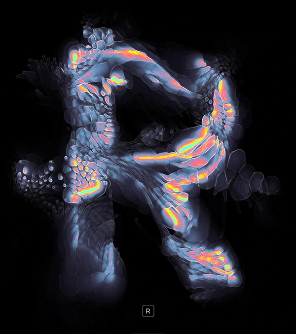 Portable Reef – is a real-time generative art project built in TouchDesigner, focused on creating biomorphic 3D visuals through interactive input. A custom-built generator responds to keyboard input, allowing users to manipulate shape, motion, and structure on the fly.
