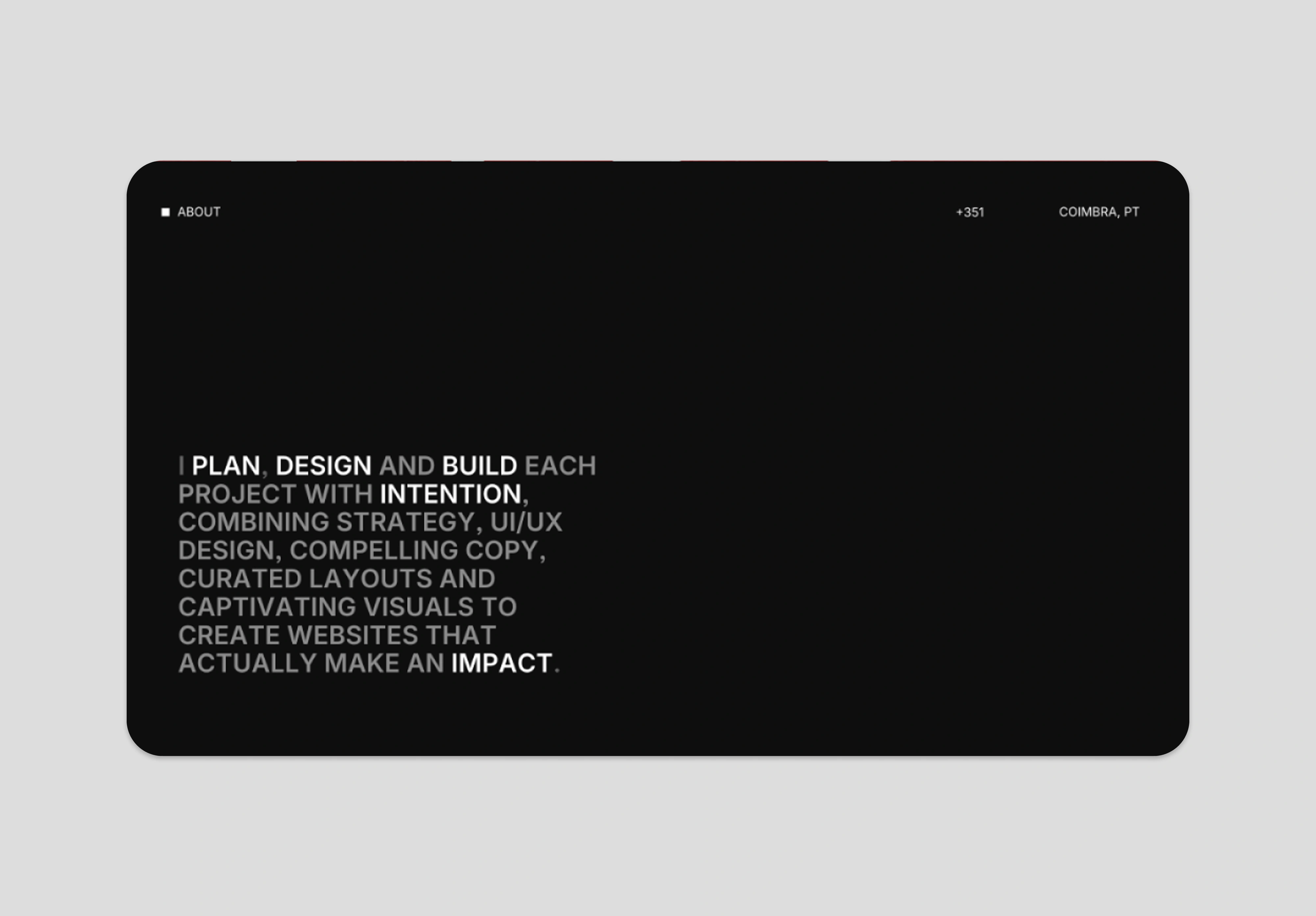 This portfolio is a reflection of my design approach: clean, intentional, and visually driven. I built it to showcase how I combine graphic design sensibilities, structured UI/UX thinking, and motion to create modern, high-quality digital experiences.