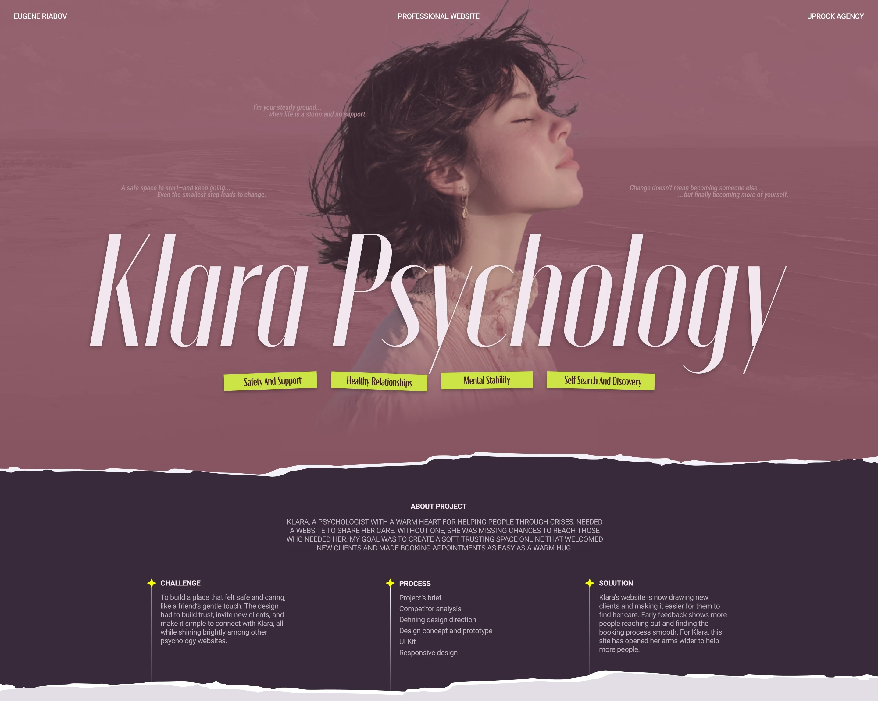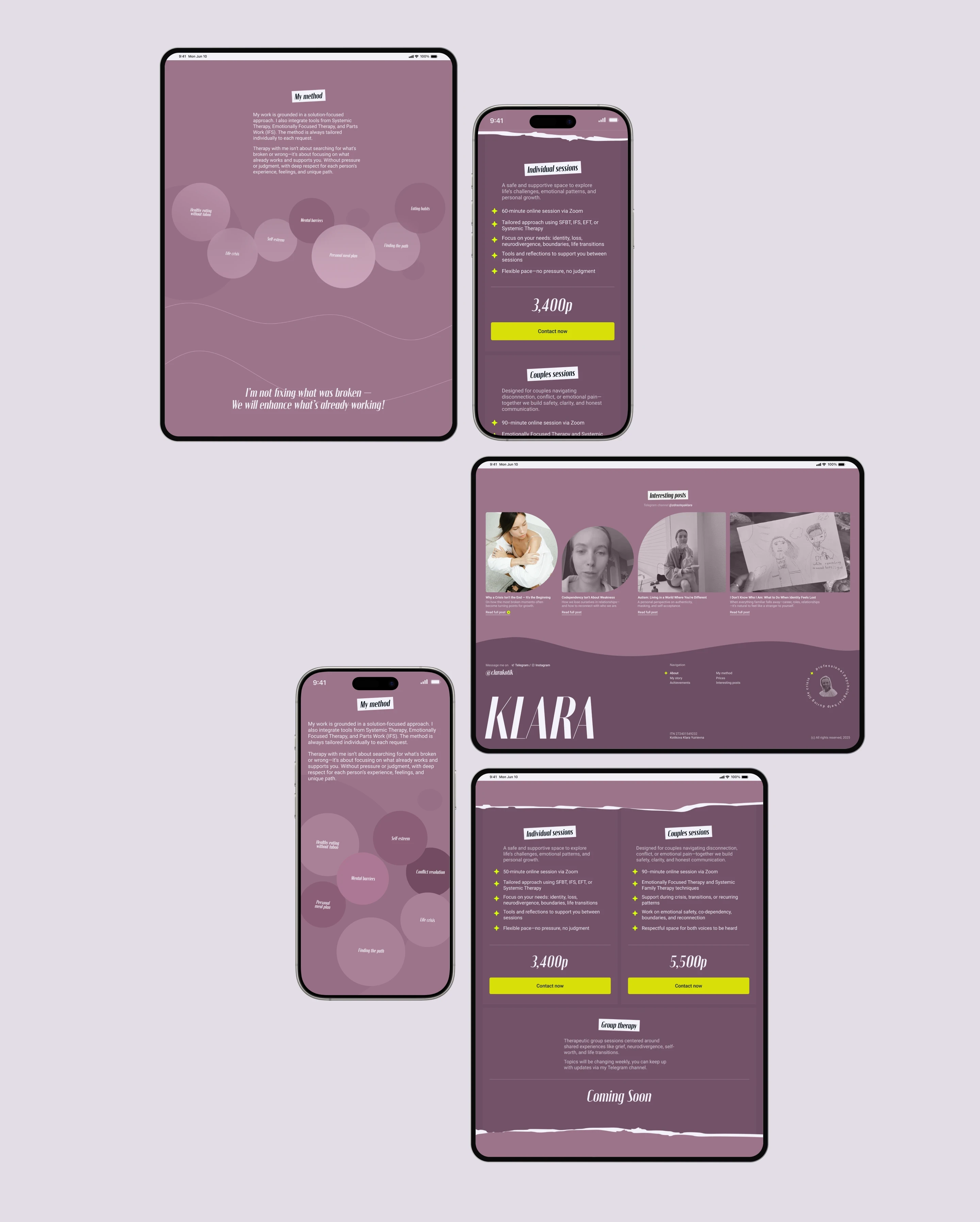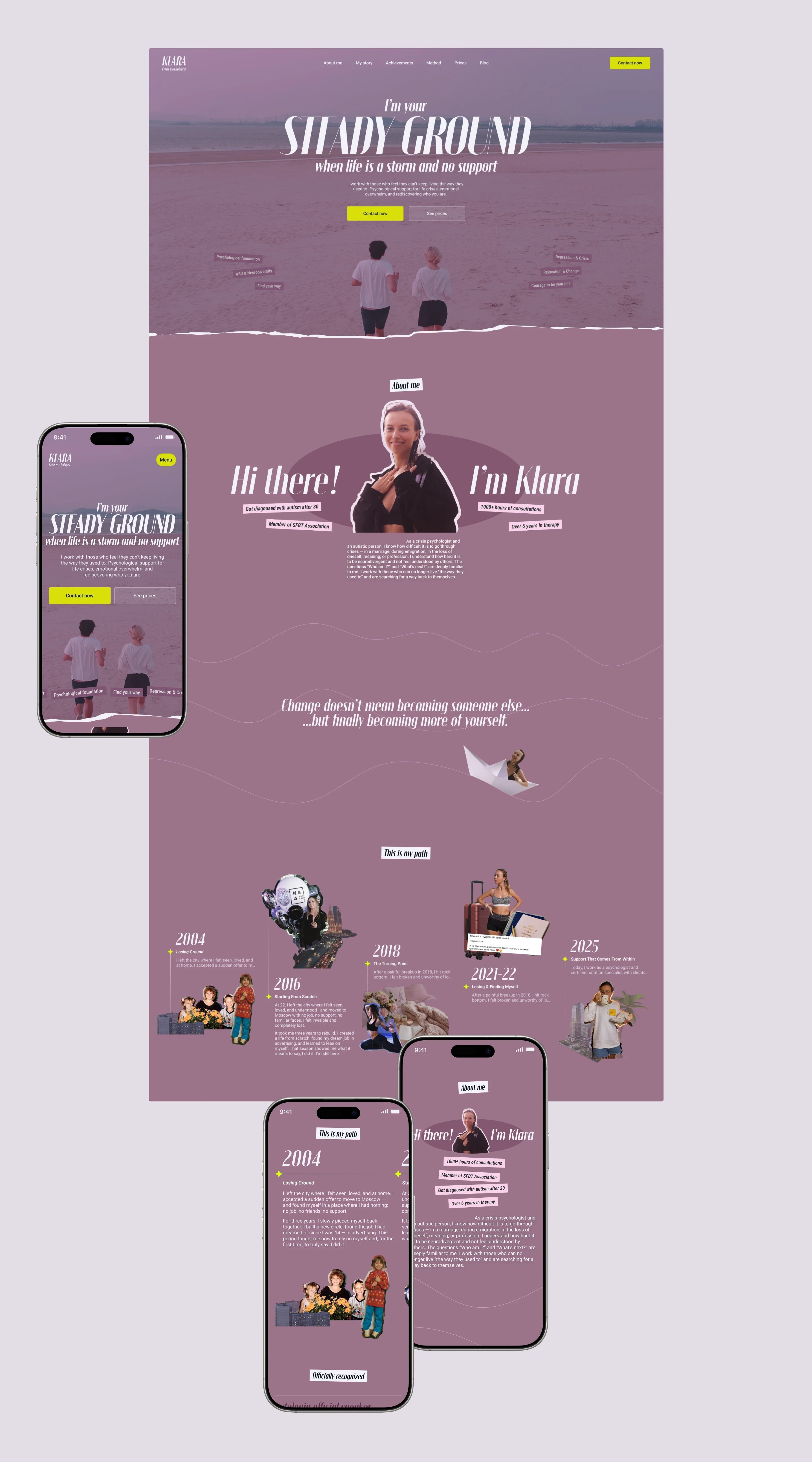 A warm, personal website for Klara — a psychologist helping people navigate life crises, build self-understanding, and create healthier relationships with them…