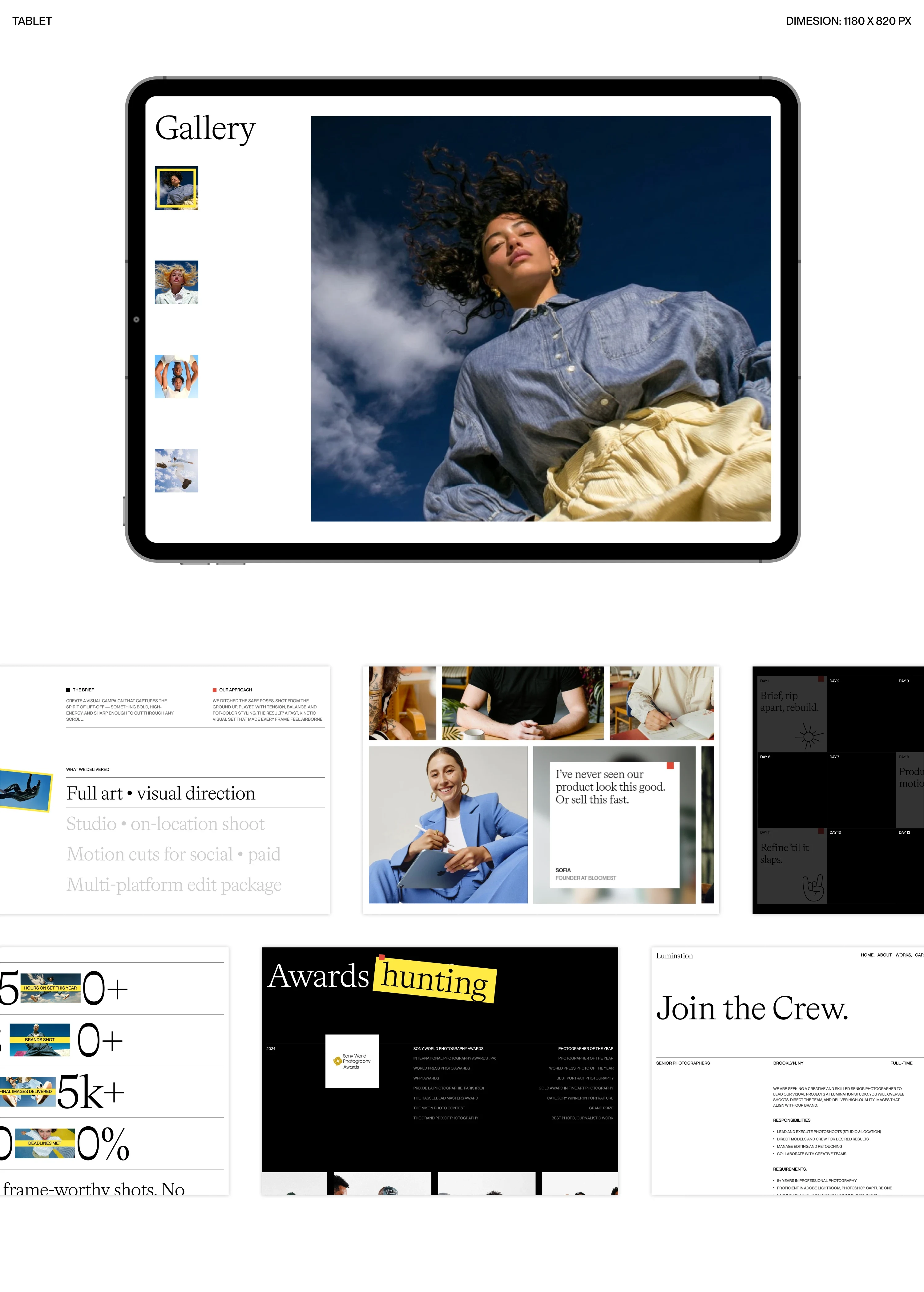 We developed a visual direction that balances expressive typography with modular layouts. The identity draws from contemporary editorial aesthetics—pairing bold headlines, generous white space, and subtle motion to guide the viewer’s eye seamlessly across each section.