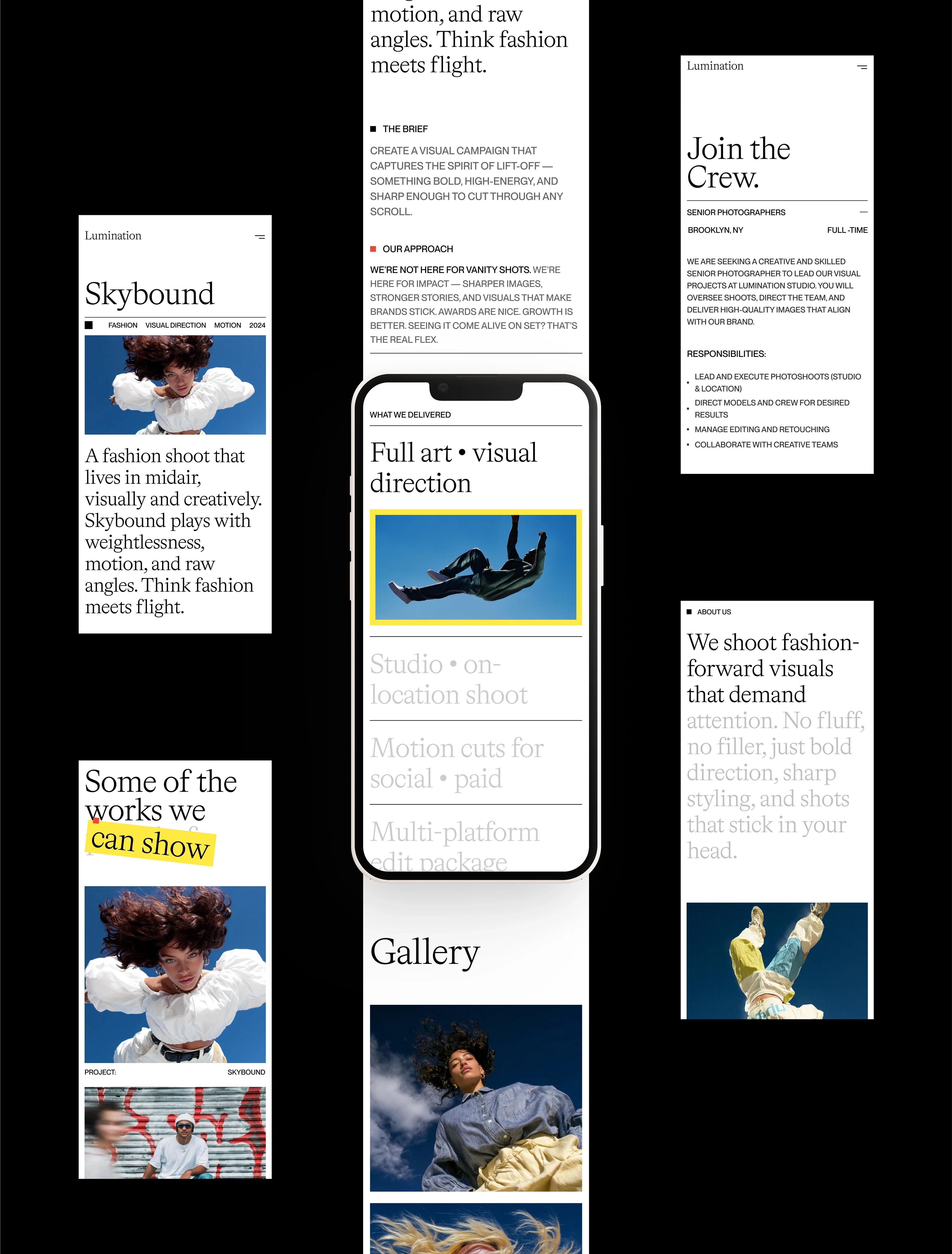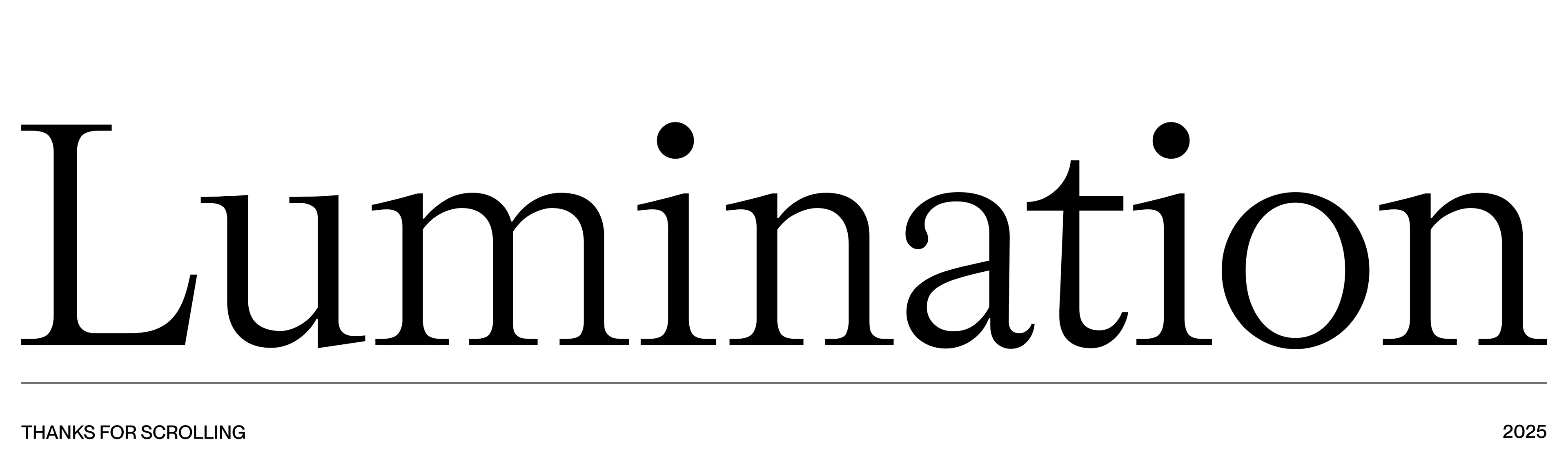 The final design presents Lumination as a confident, forward-thinking brand. It combines visual boldness with editorial precision, offering an immersive experience that strengthens both its creative identity and professional credibility.