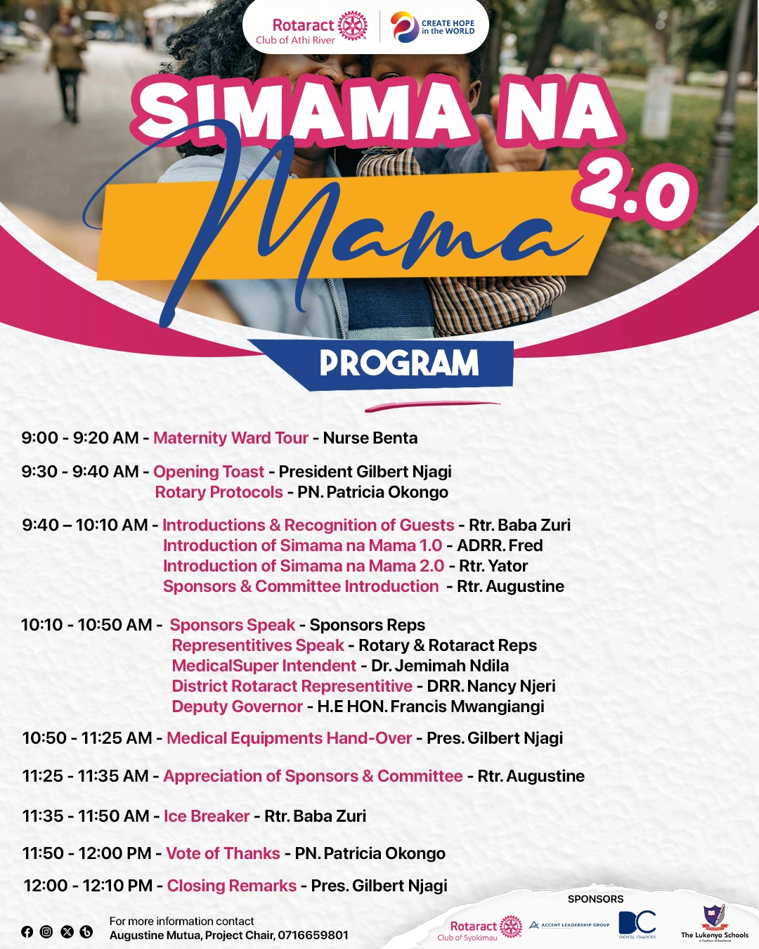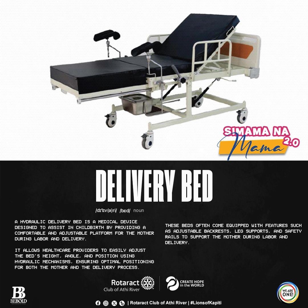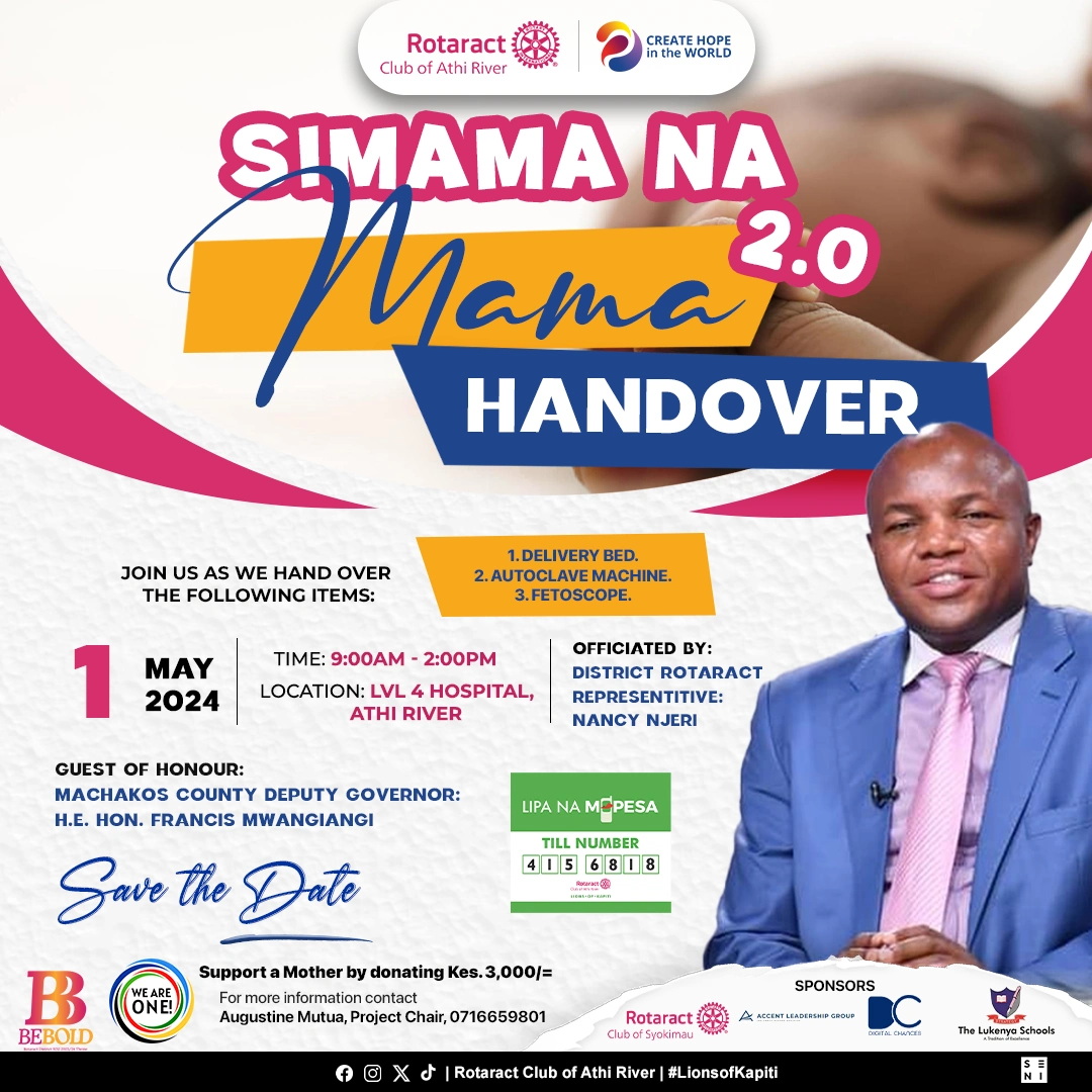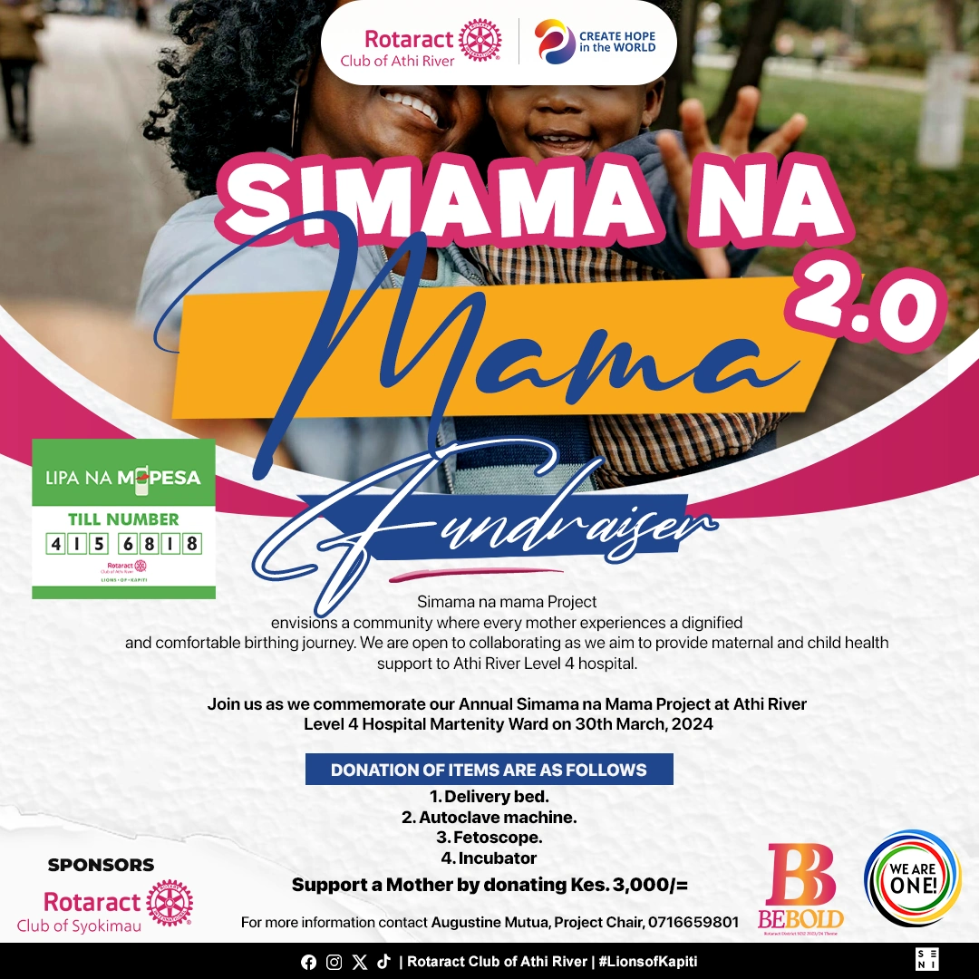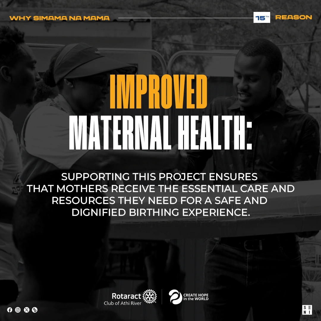 Simama Na Mama (Stand with The Mother) is a project that combines efforts to provide maternal and child health support to Athi-River Level 4 hospital through donations, including a delivery bed, autoclave machine, fetoscope, and an incubator.