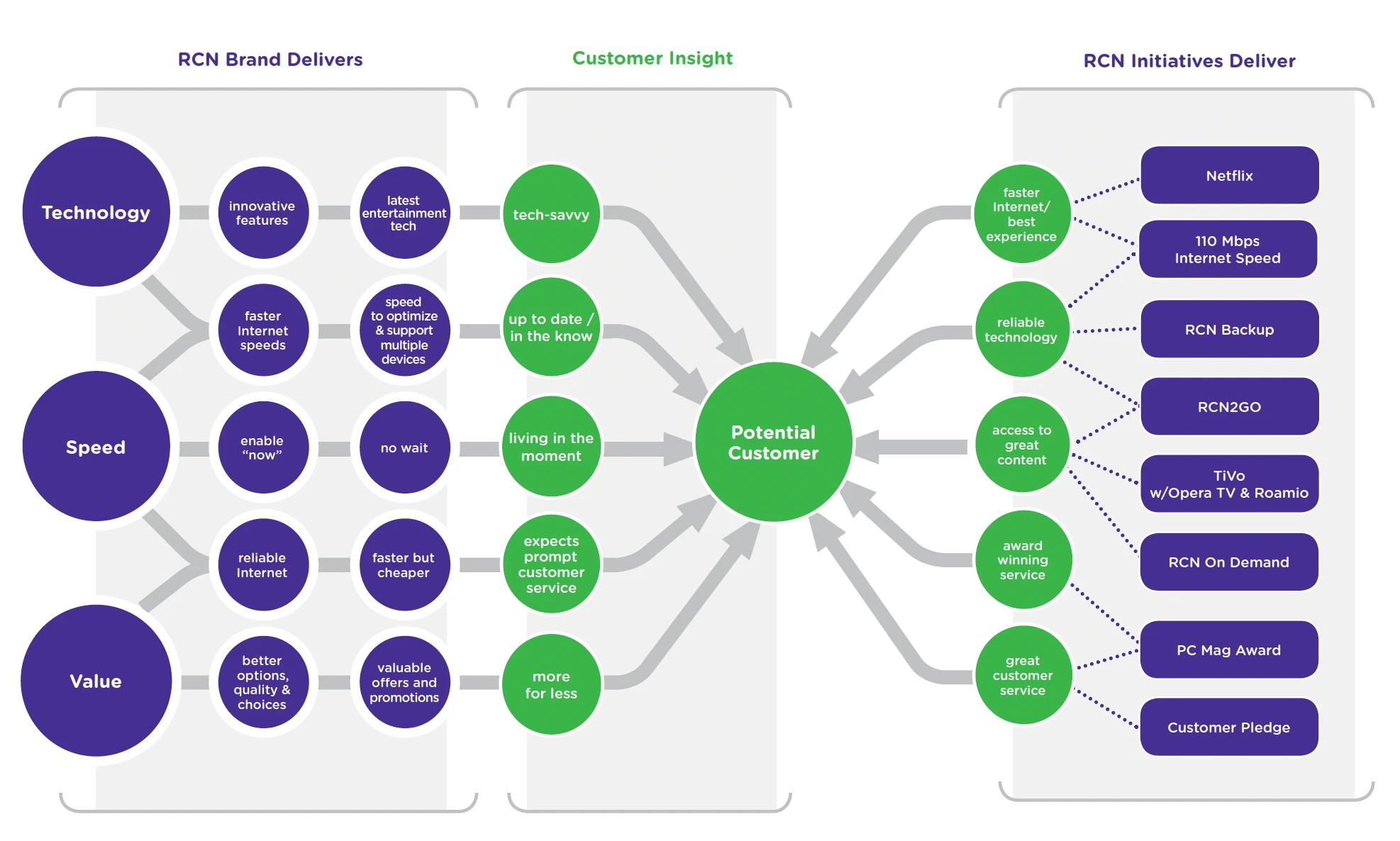 Differentiate through speed, value, customer service, and tech-forward partnerships (TiVo, Opera TV Store, RCN2GO)