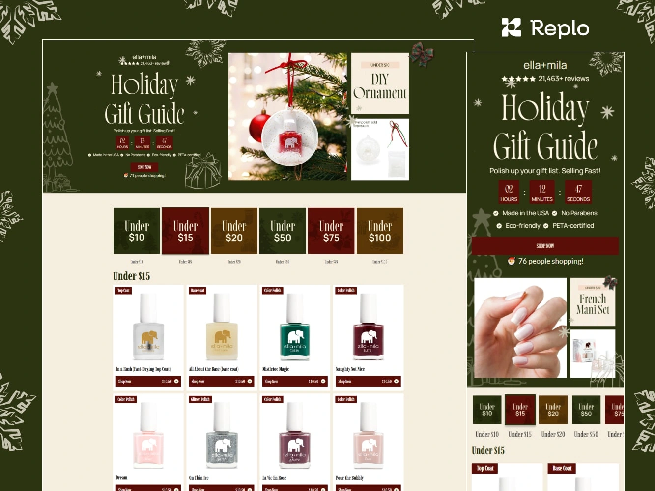 For Ella+Mila, I developed a refreshed holiday shopping guide designed to simplify navigation and improve mobile usability. The brand’s previous layout relied heavily on horizontal sliders, which made it difficult for users—especially on mobile—to compare products quickly or explore items within specific price ranges.