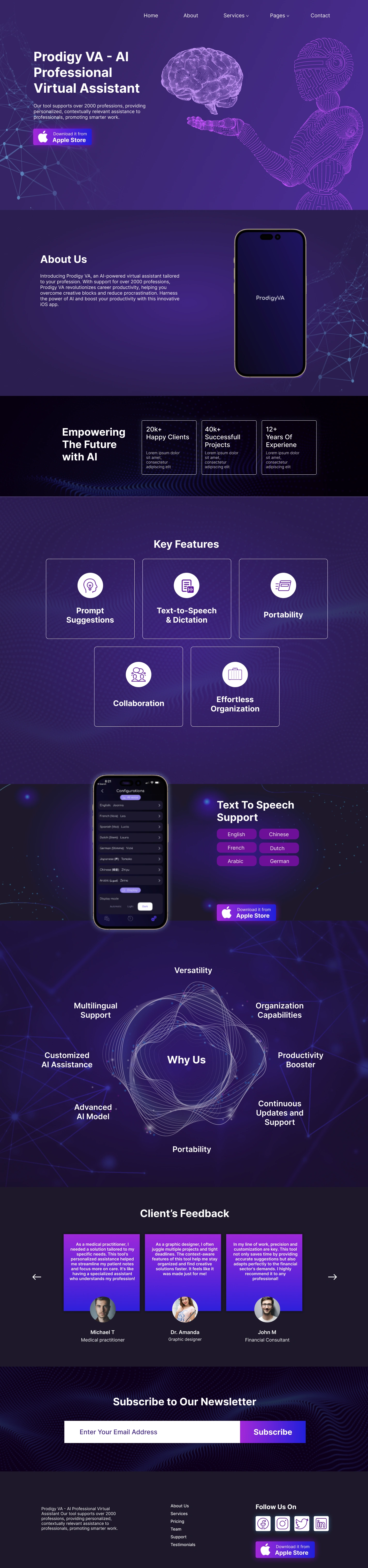 Challenge: We collaborated with Prodigy VA, an innovative AI tool for professionals, to create an enticing landing page for their marketing campaign, encouraging users to download their app from the App Store.