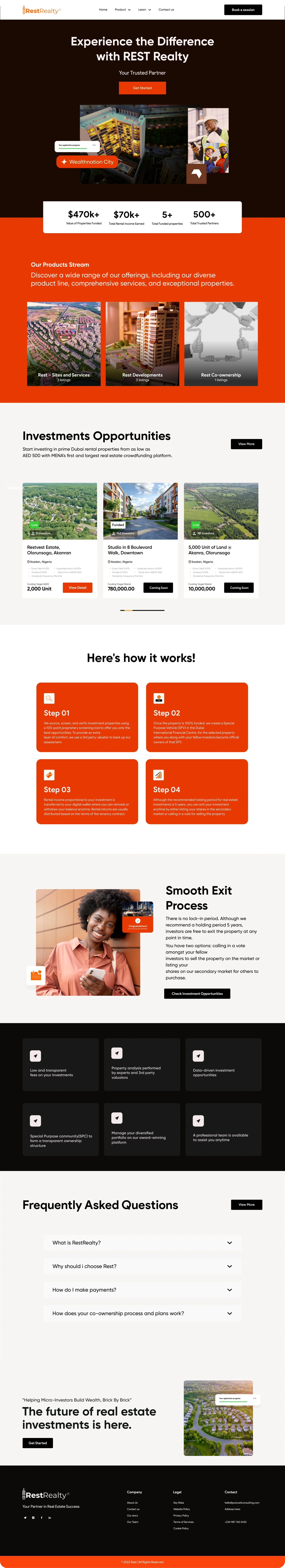 RestRealty is a modern real estate company dedicated to making property discovery, buying, and renting more seamless for clients. The goal of this project was to create a website that reflects trust, professionalism, and convenience while positioning RestRealty as a reliable partner in real estate.
