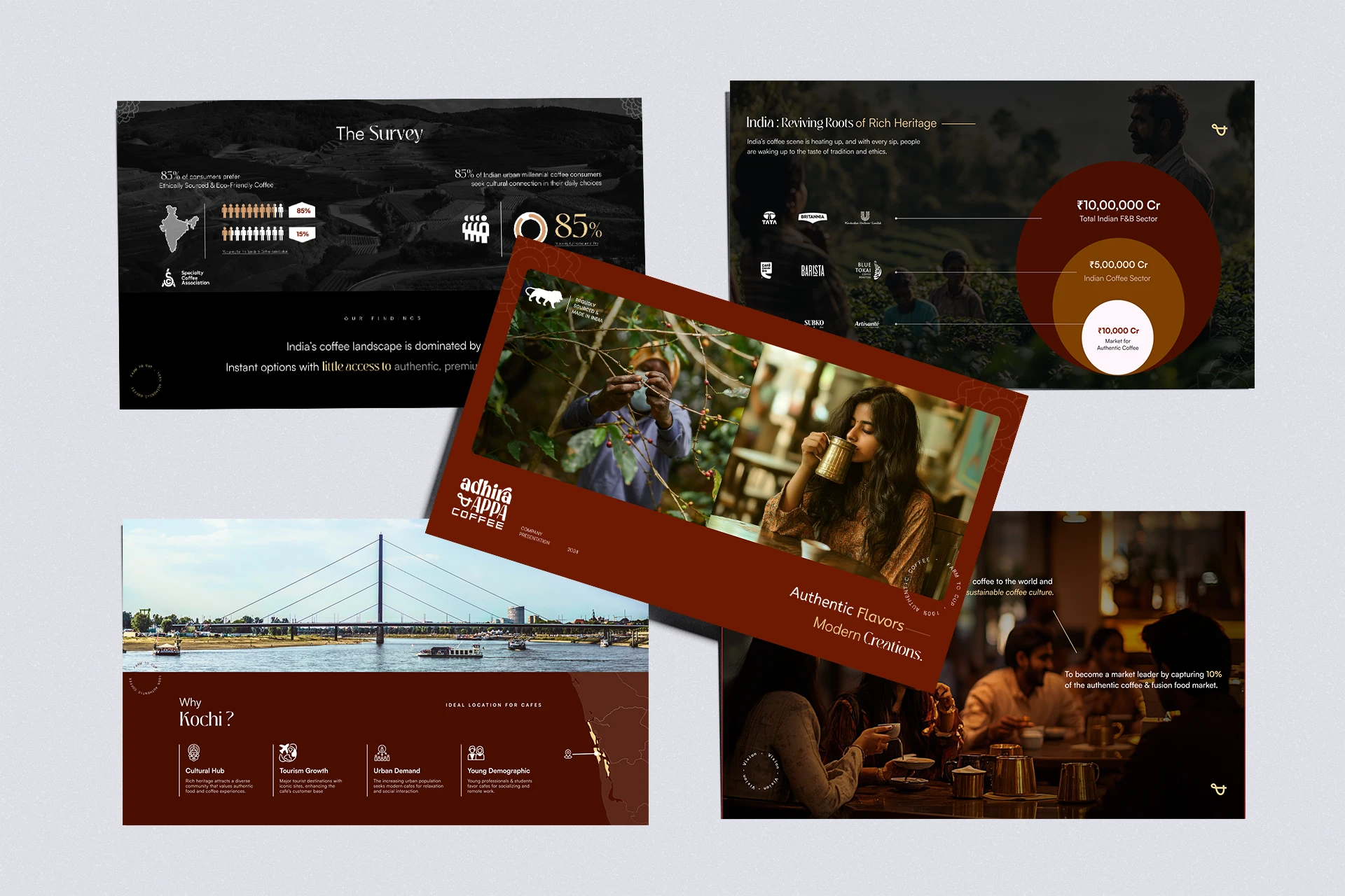 Developed a consumer-facing pitch deck for a modern coffee brand aiming to expand distribution and attract retail partnerships. My focus was on aligning the visual tone with the brand’s identity — earthy, premium, and lifestyle-driven. I structured the presentation to highlight the brand story, sourcing ethics, product range, and market opportunity. Each slide was designed with consistent branding, elegant layouts, and powerful imagery to spark interest and build credibility with stakeholders.