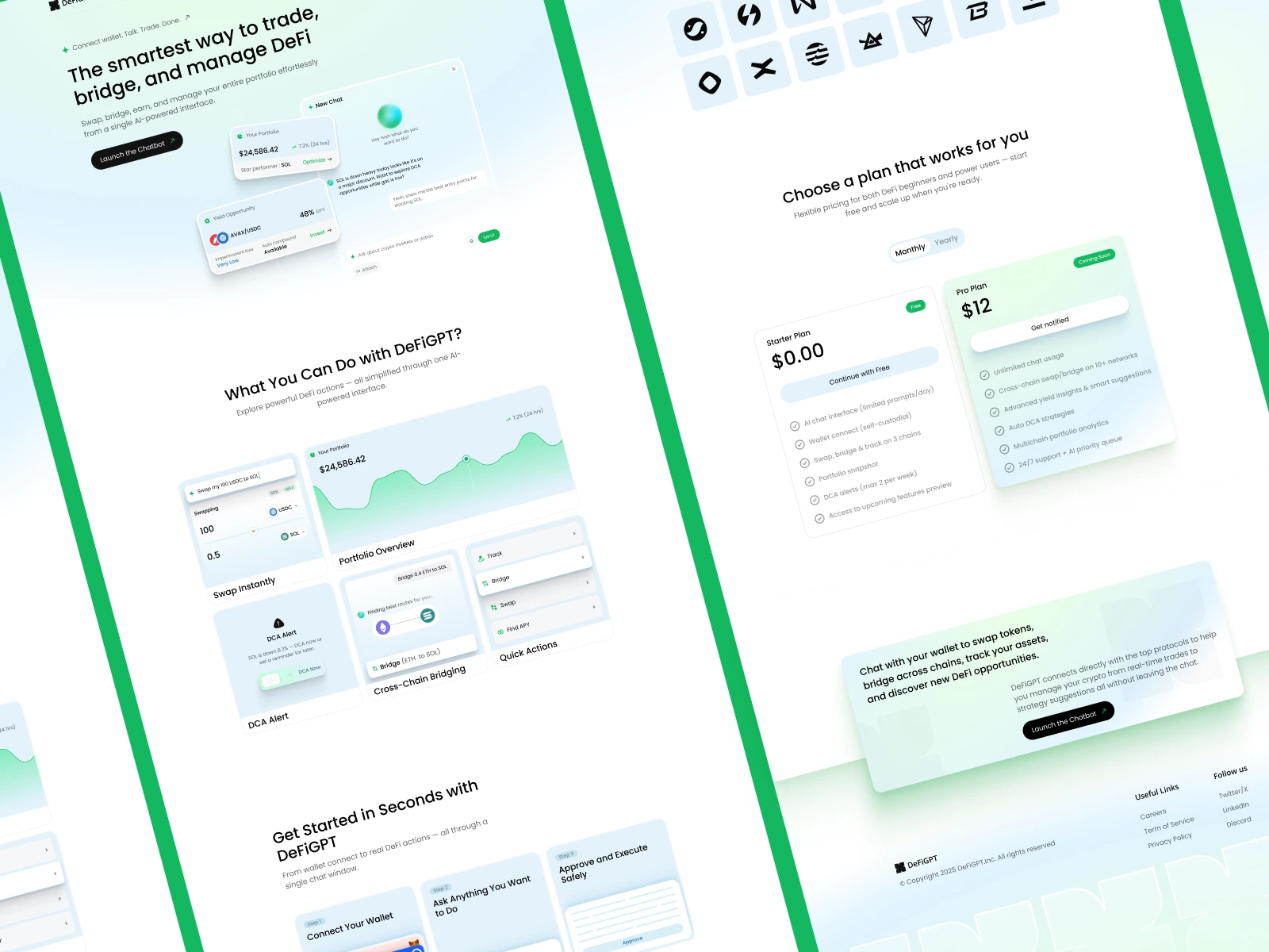 Designed a minimal landing page for Defi GPT, a crypto AI tool that lets users swap, send, and buy crypto easily. Focused on clean UI and clarity.