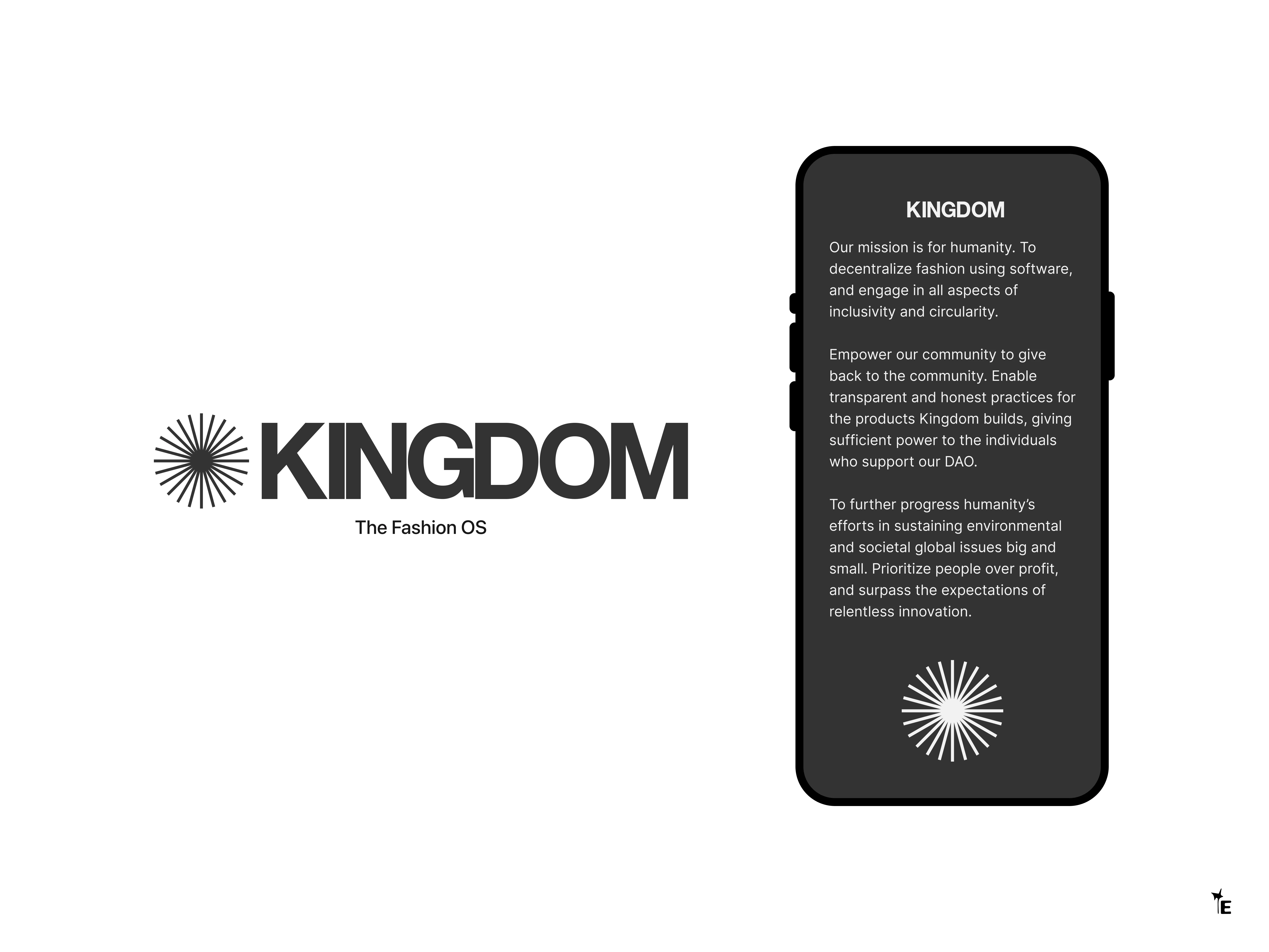Kingdom is a decentralized onchain fashion marketplace. There is a significant amount of demand for large organizations to address worldwide social and economic problems, with corporate entities acting in their own interests. Control over data ownership becomes scarce as technology improves, only to relate to the human being as a product. In the fashion world, our shopping habits contribute to one of the largest environmental footprints across the globe.