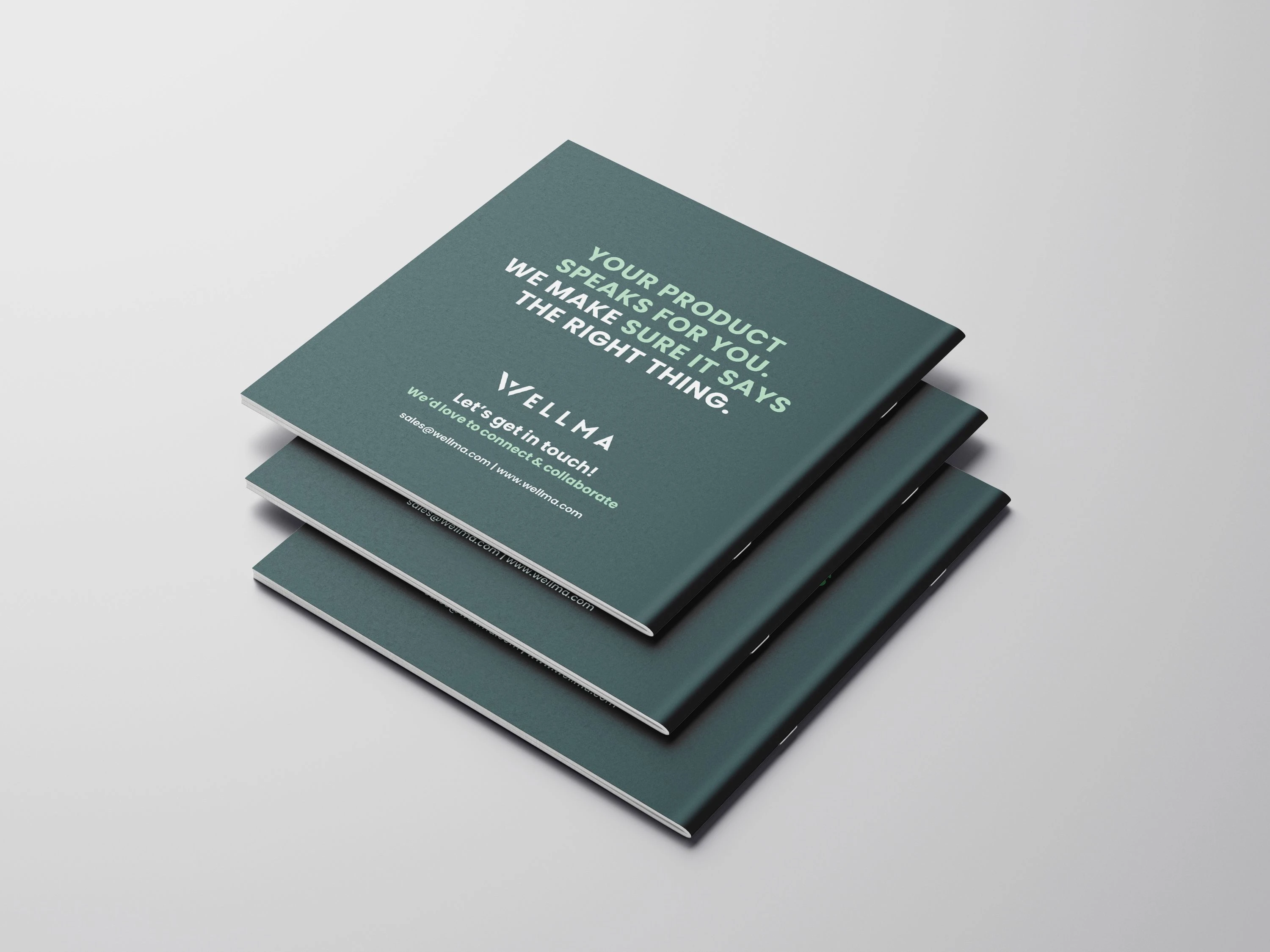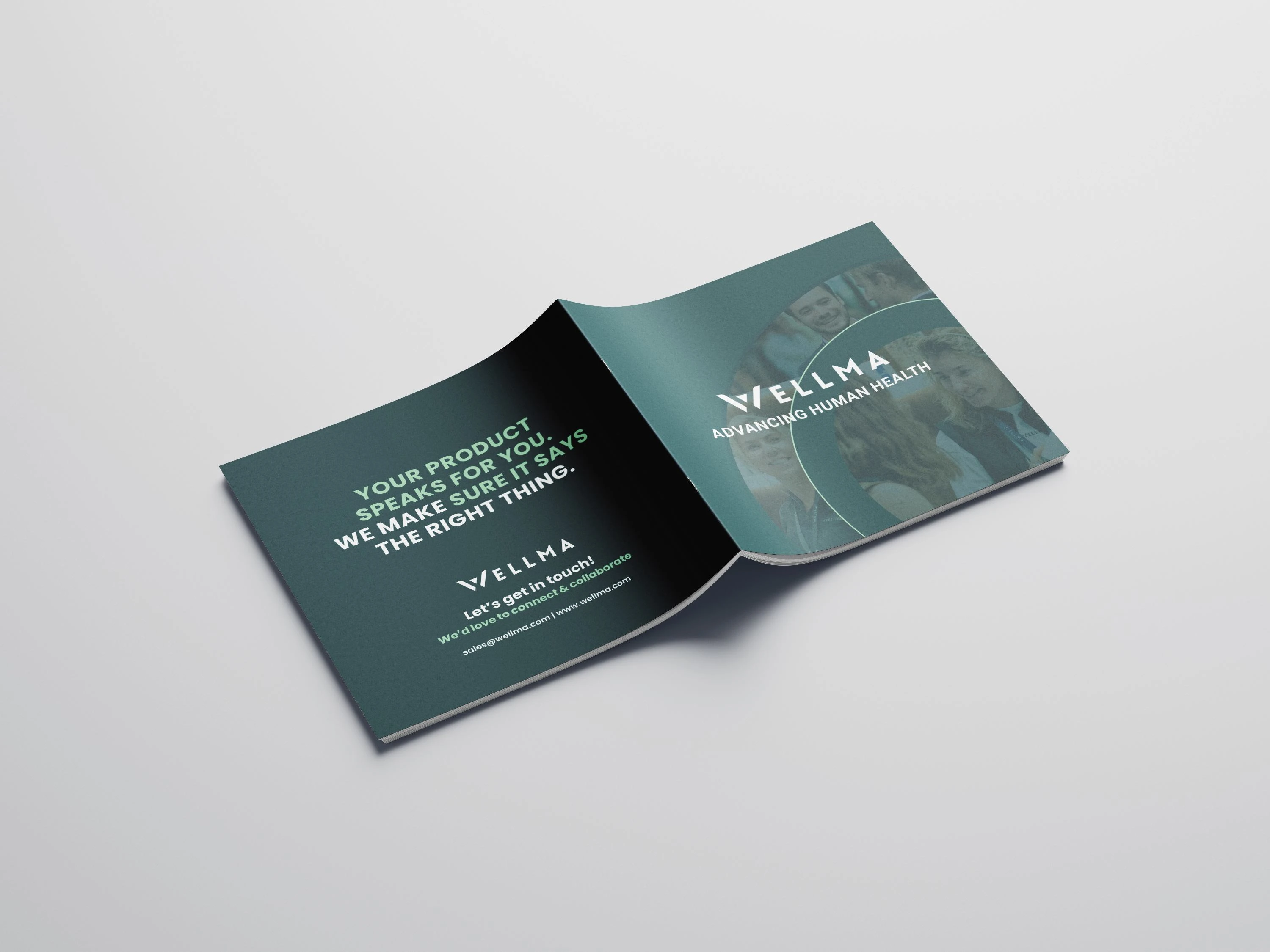 The closing page reinforces Wellma’s brand message with a confident call to action. Minimal layout, strong typography, and consistent color usage create a professional finish while encouraging collaboration and connection.