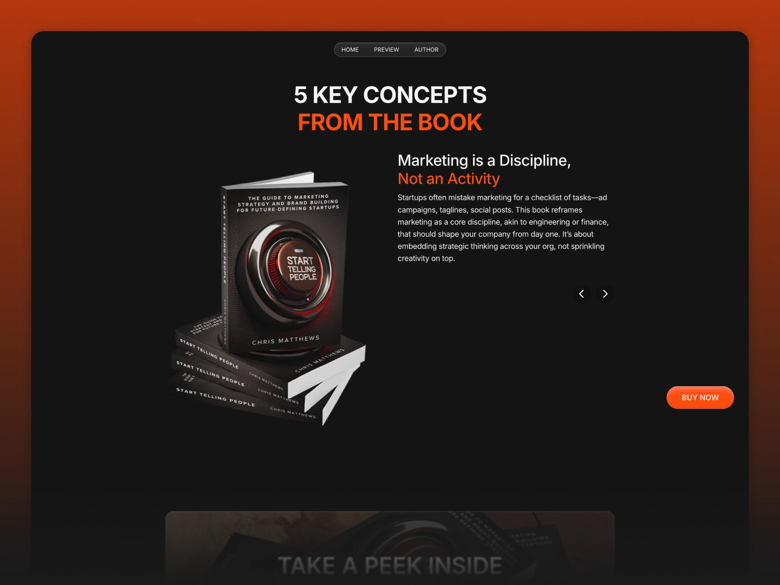 Start Telling People is a book by Chris Matthews aimed at startups, offering insights on marketing, growth, and strategy. The book needed a dedicated website to create a focused sales space, attract more traffic, and boost sales.