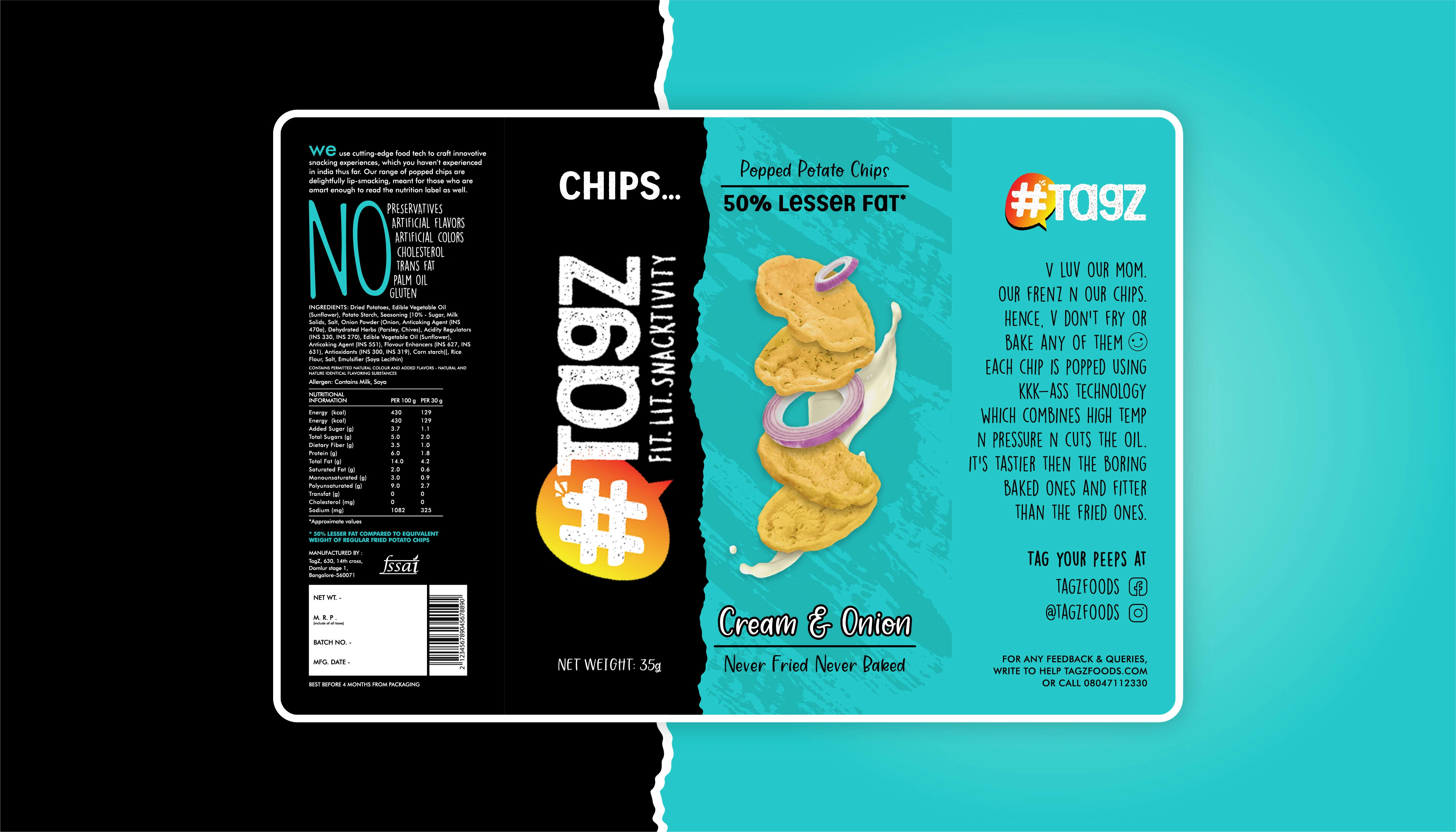 Tagz is a new innovative genZ snacks brand built on internet and also featured on Shark Tank India Season 1. We worked on the concept for Product Packaging.