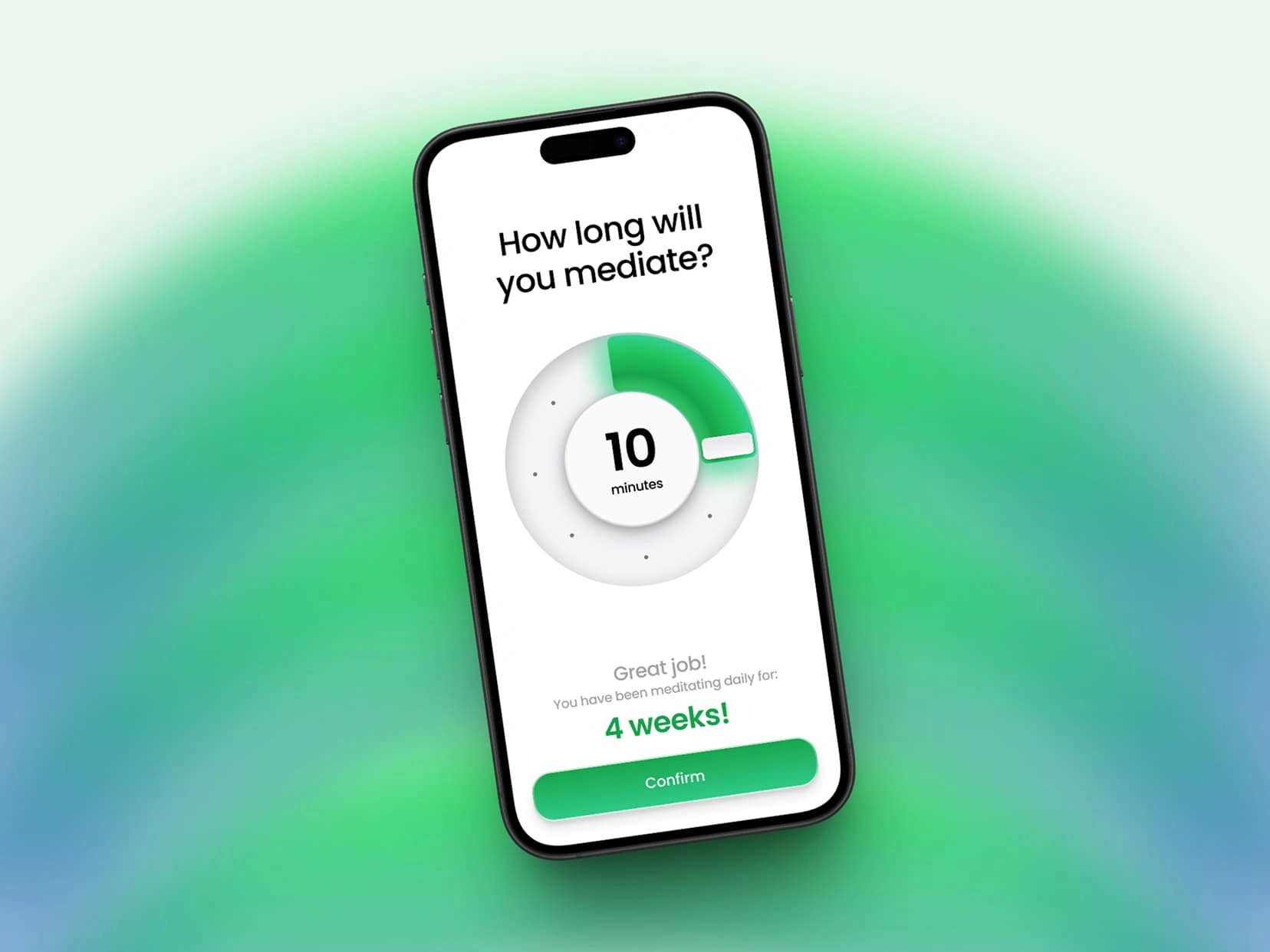Concept for a focused meditation app with visual timers and progress tracking. Reinforces streaks and daily habit loops.