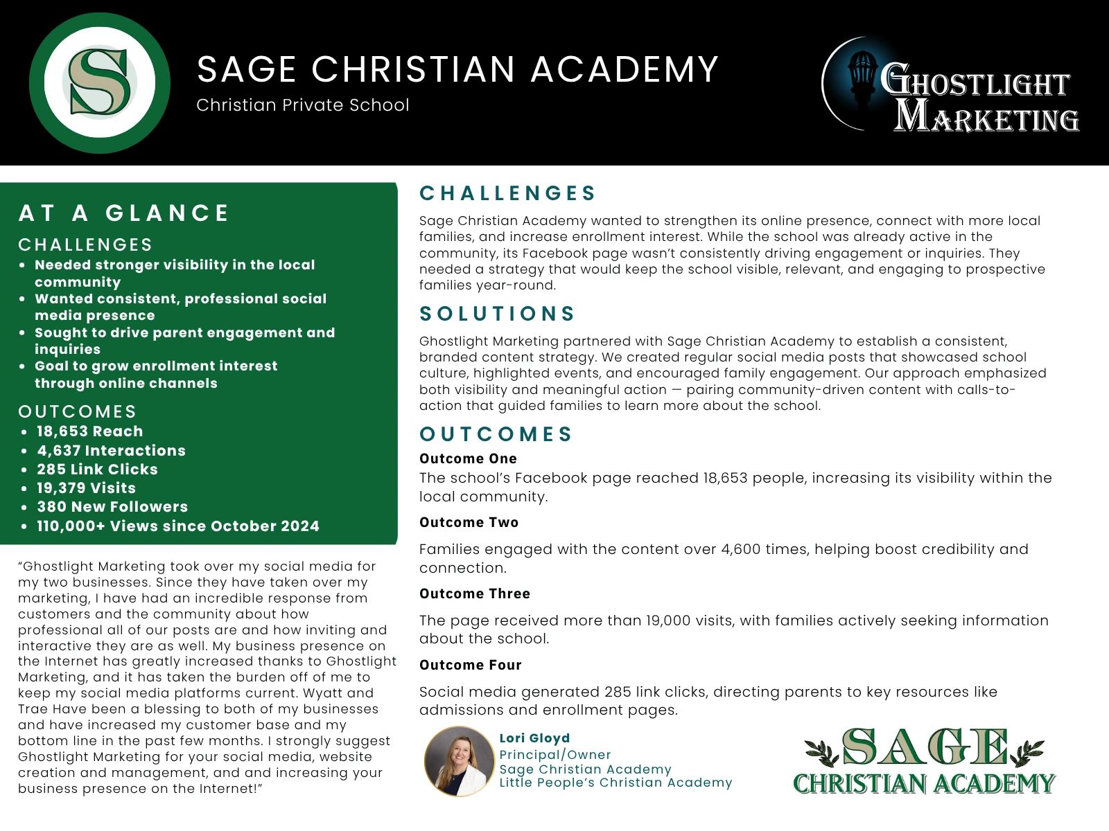 Ghostlight Marketing partnered with Sage Christian Academy to develop a consistent, branded content strategy.