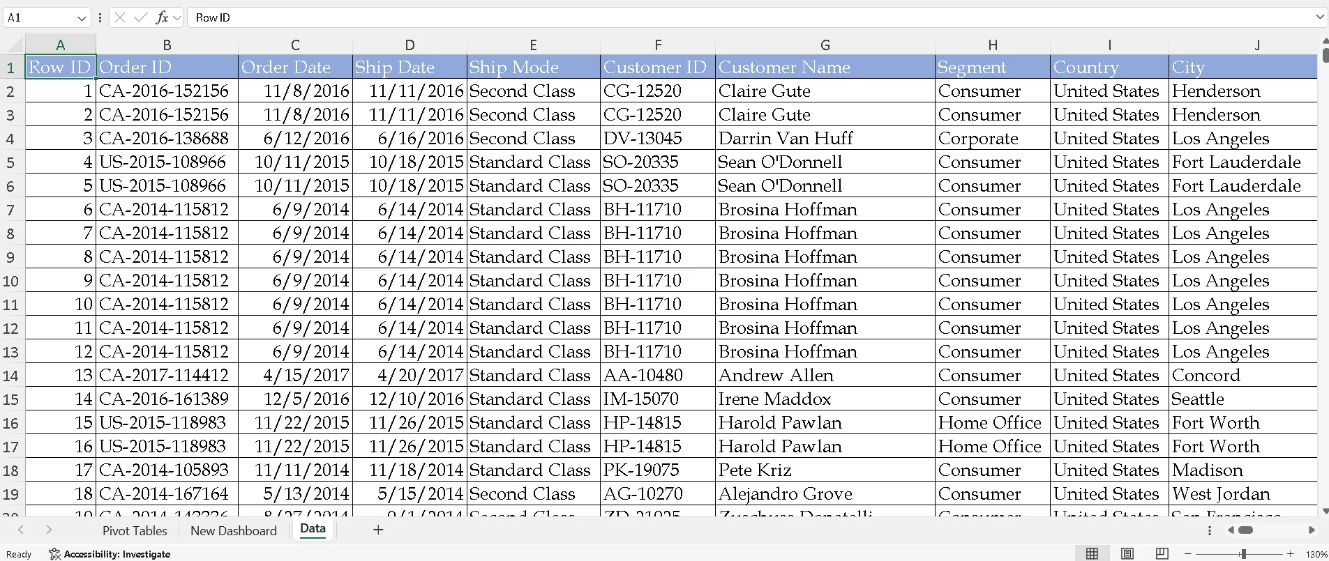 The raw dataset was cleaned and structured to ensure accurate reporting. Key steps included: