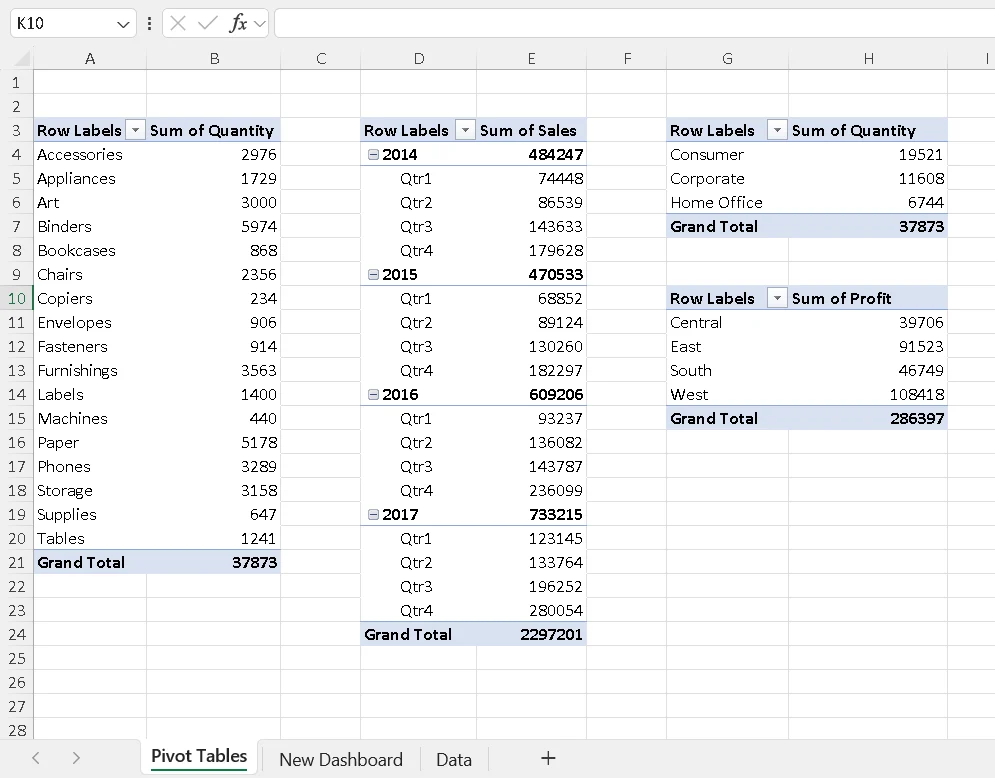 These pivot tables formed the analytical foundation for the dashboard and ensured consistency across all views.