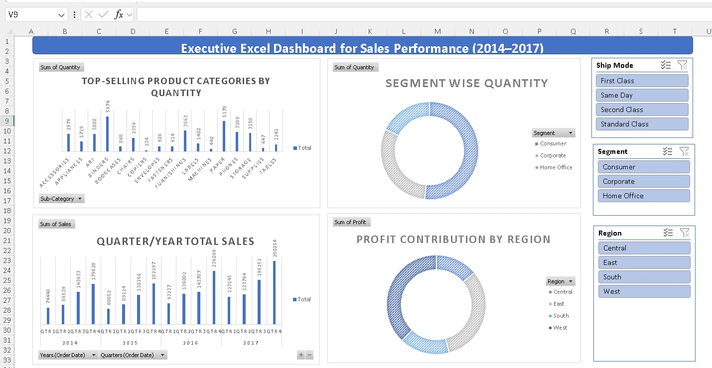 Business stakeholders often struggle with large Excel datasets that require manual filtering, repeated reporting, and time-consuming analysis. The goal of this project was to transform raw sales data into a clear, interactive Excel dashboard that allows decision-makers to track performance quickly without needing advanced Excel skills.