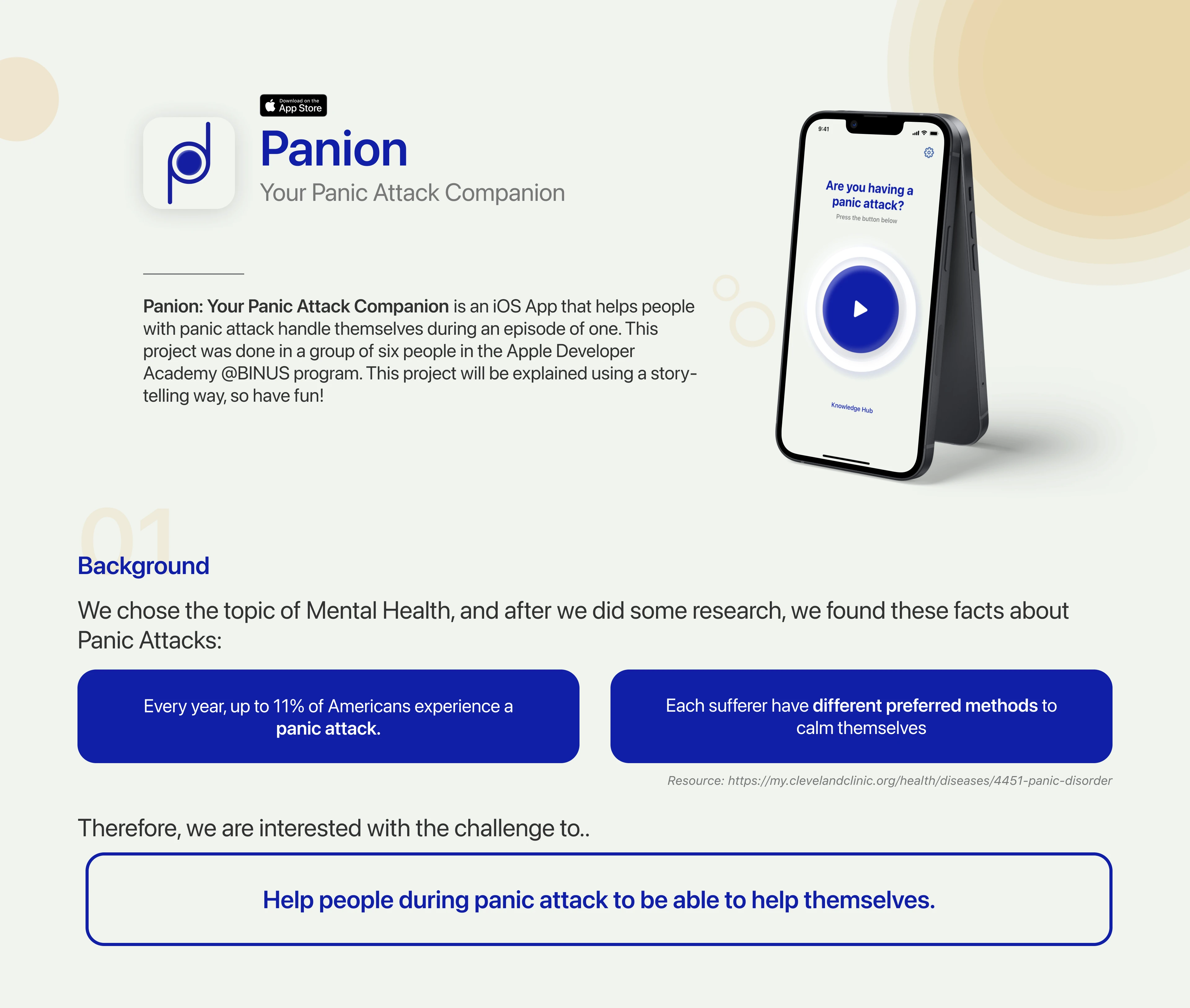 Panion: Your Panic Attack Companion is an iOS App that helps people with panic attack handle themselves during an episode of one.