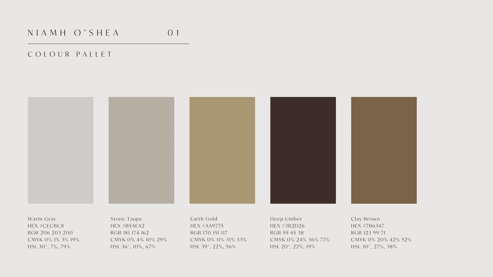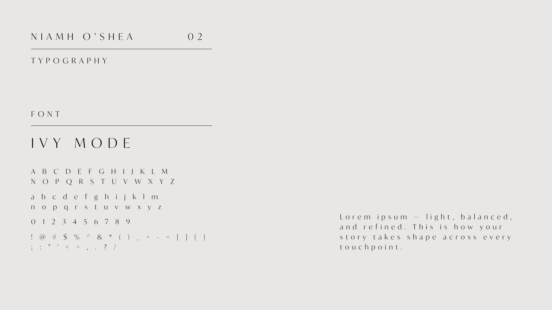 A refined, elemental identity built to reflect the grounded presence and poetic clarity of Niamh’s work.