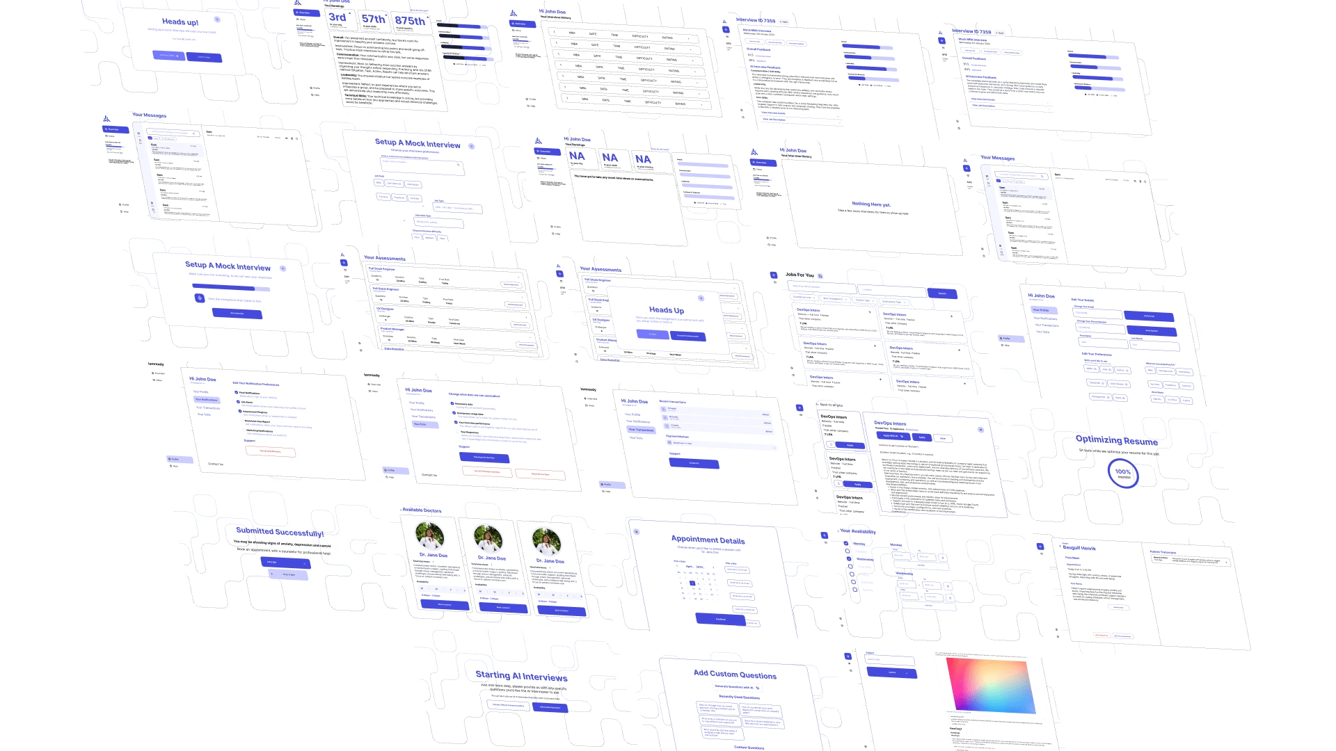 Designed IamReadyAI, an AI-driven platform for mock interviews, jobs, and wellness with automated flows and multi-role dashboards.