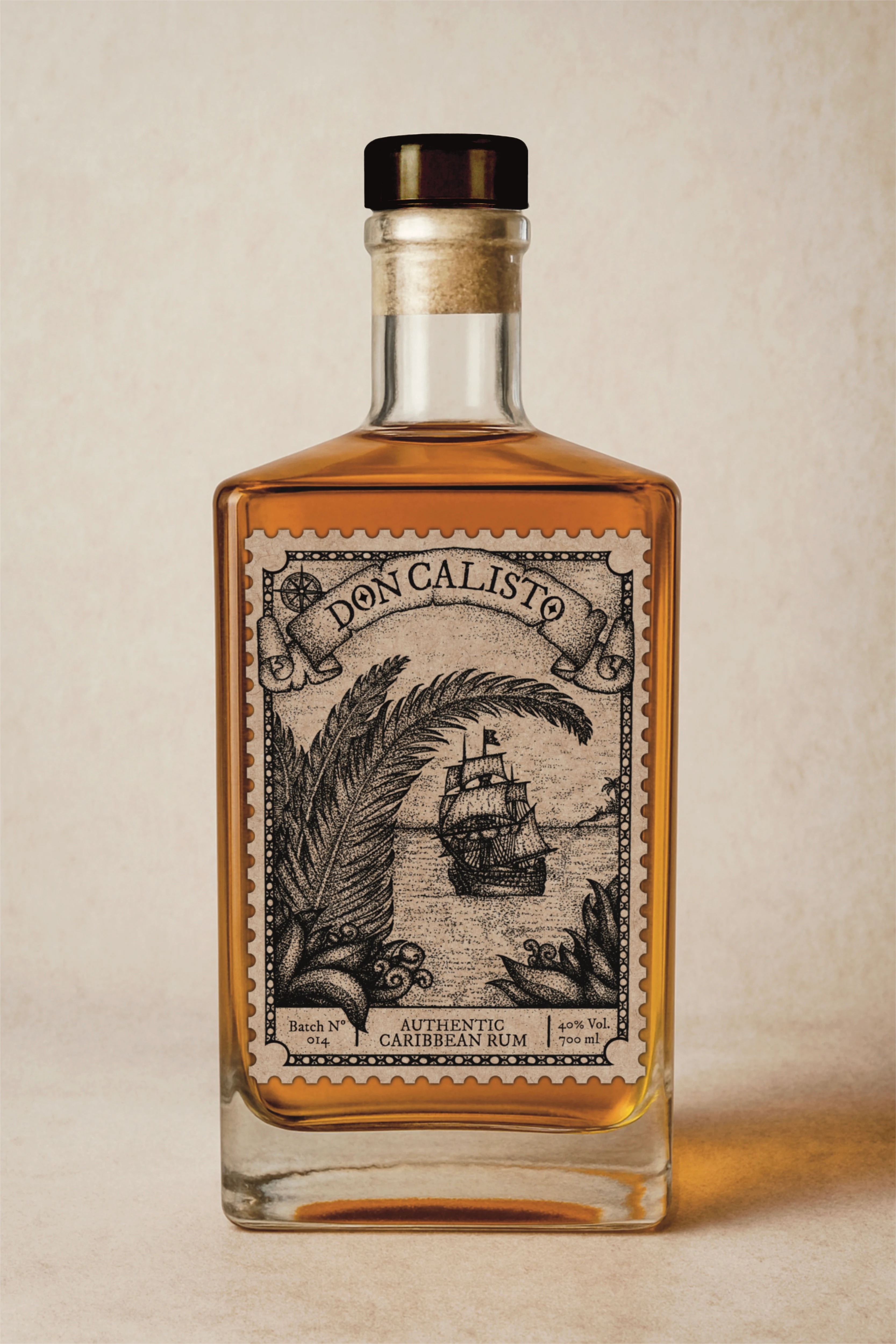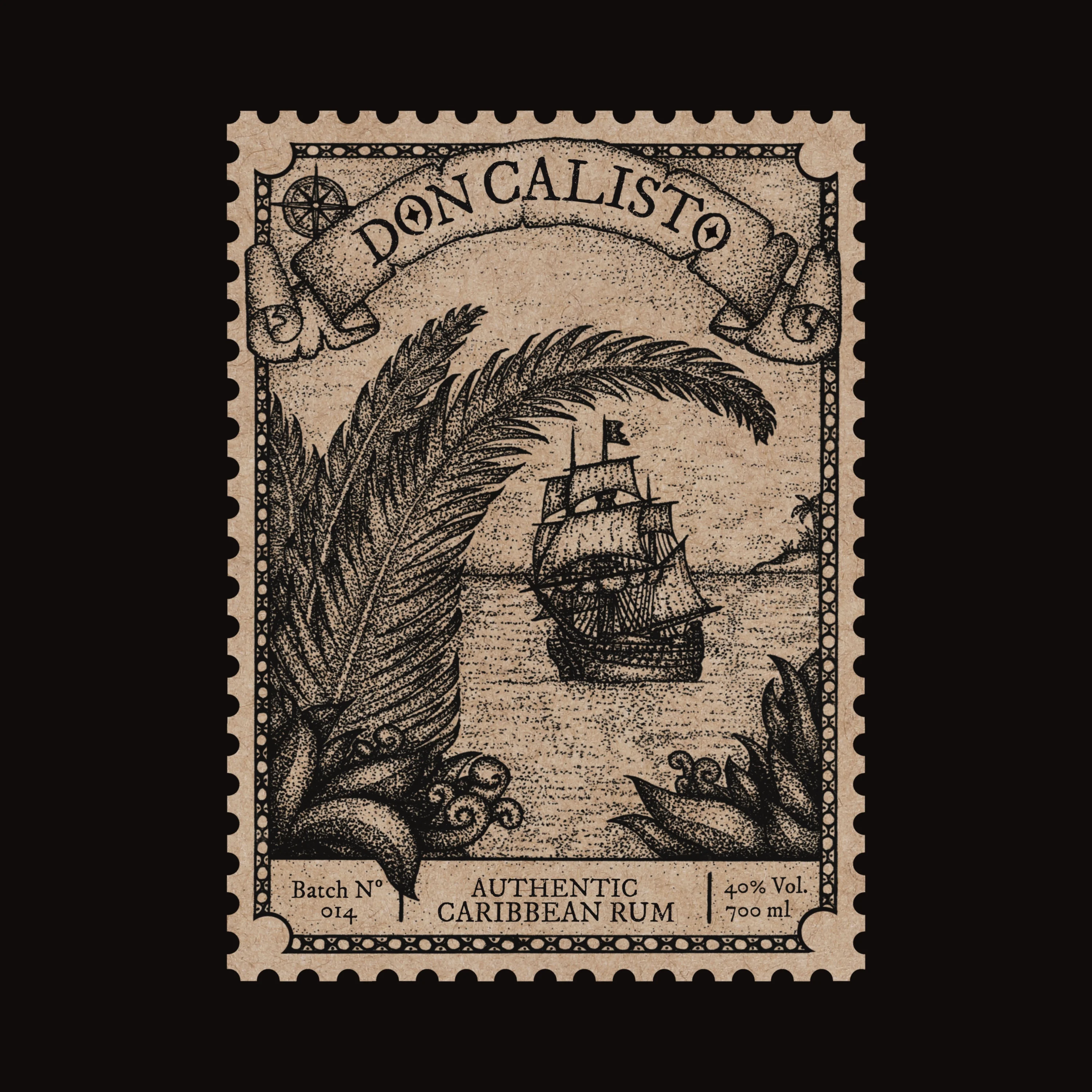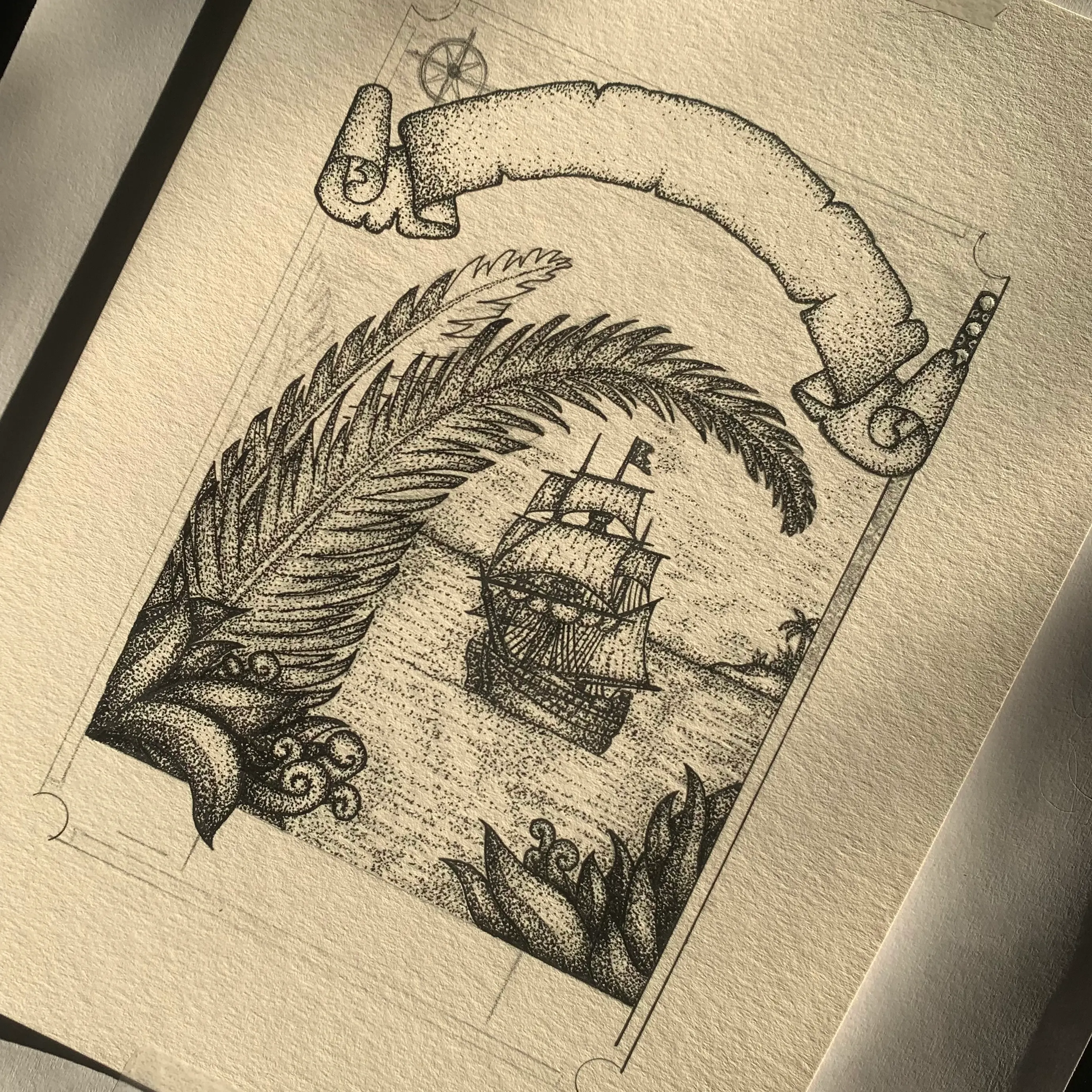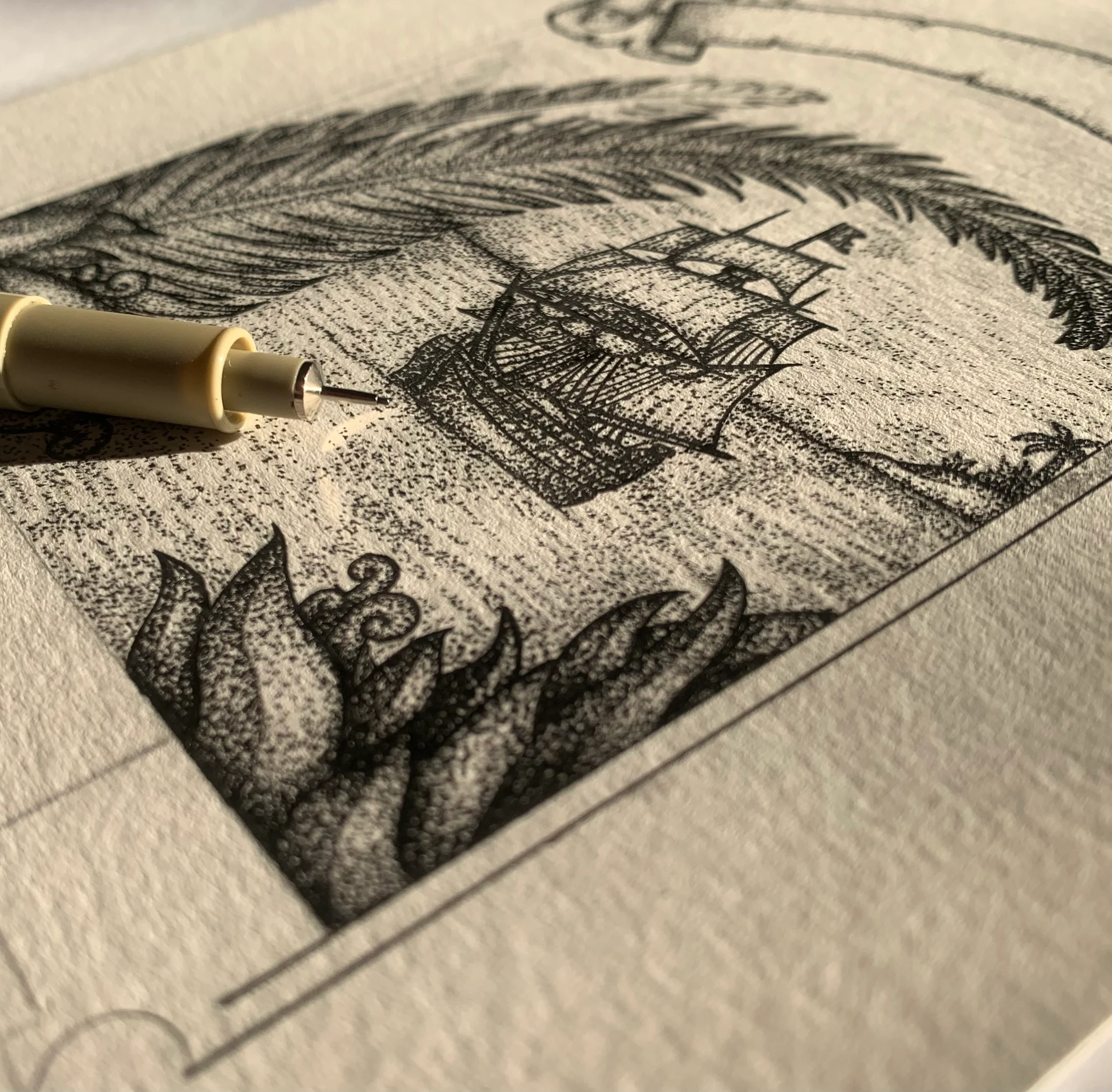 Illustration for a Caribbean Rum Label. Drawn by hand with ink pens.