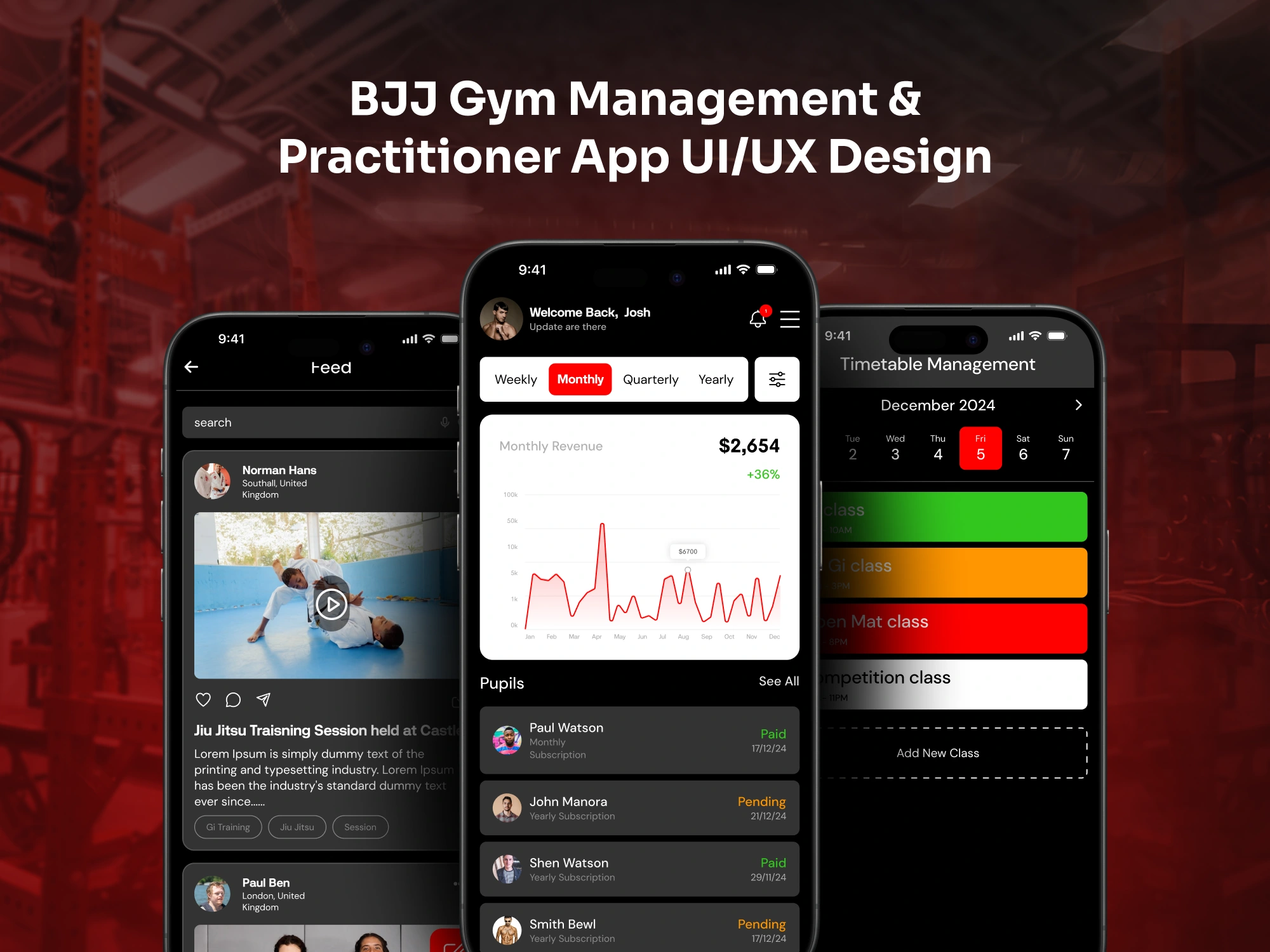 Designed a BJJ community app UI/UX that improved trainer–practitioner connections, streamlined onboarding, and boosted user engagement by 35%.